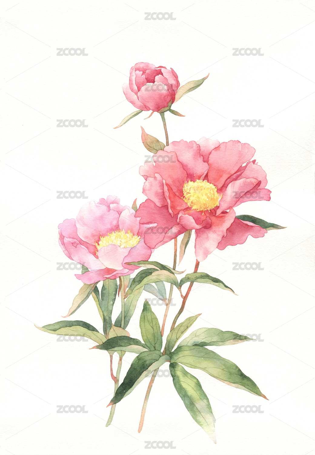 水彩畫芍藥
