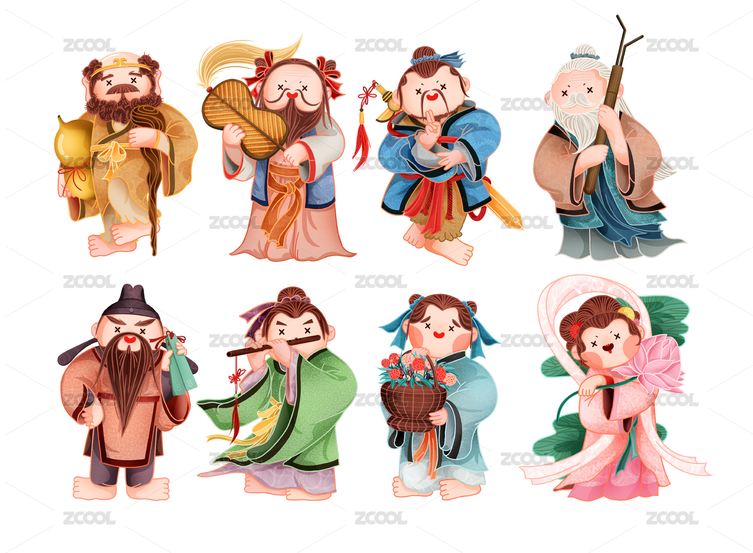 八仙過海人物角色系列原創(chuàng)插畫