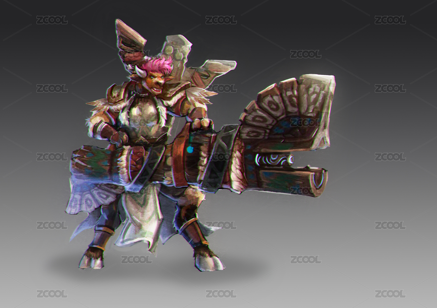 灰色漸變背景的牛頭人角色