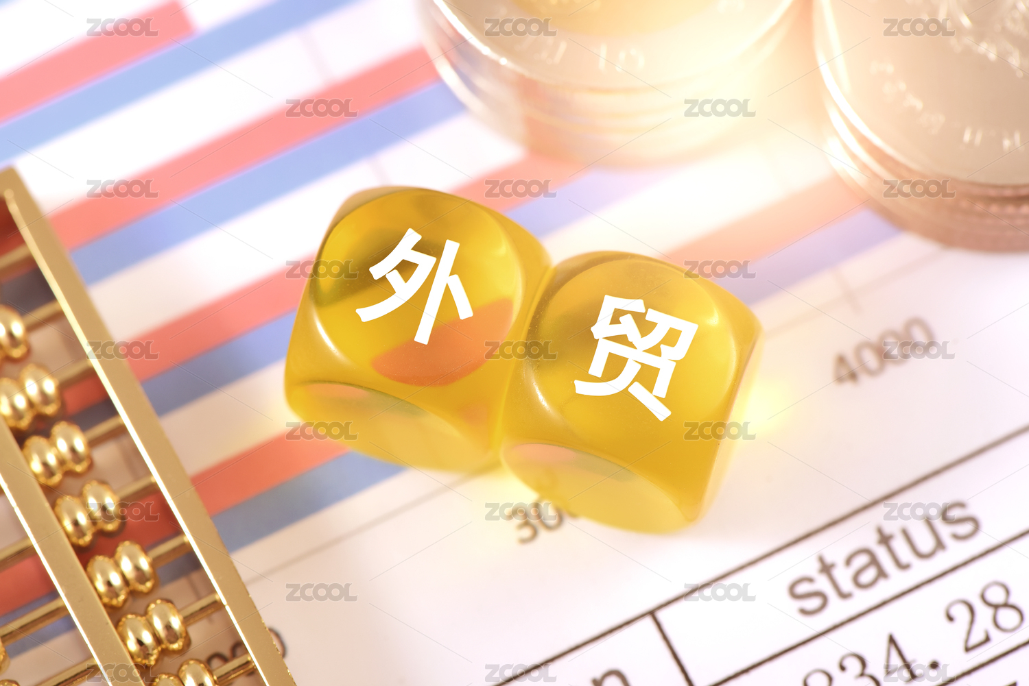 金融辦公用品上放著文字積木外貿(mào)