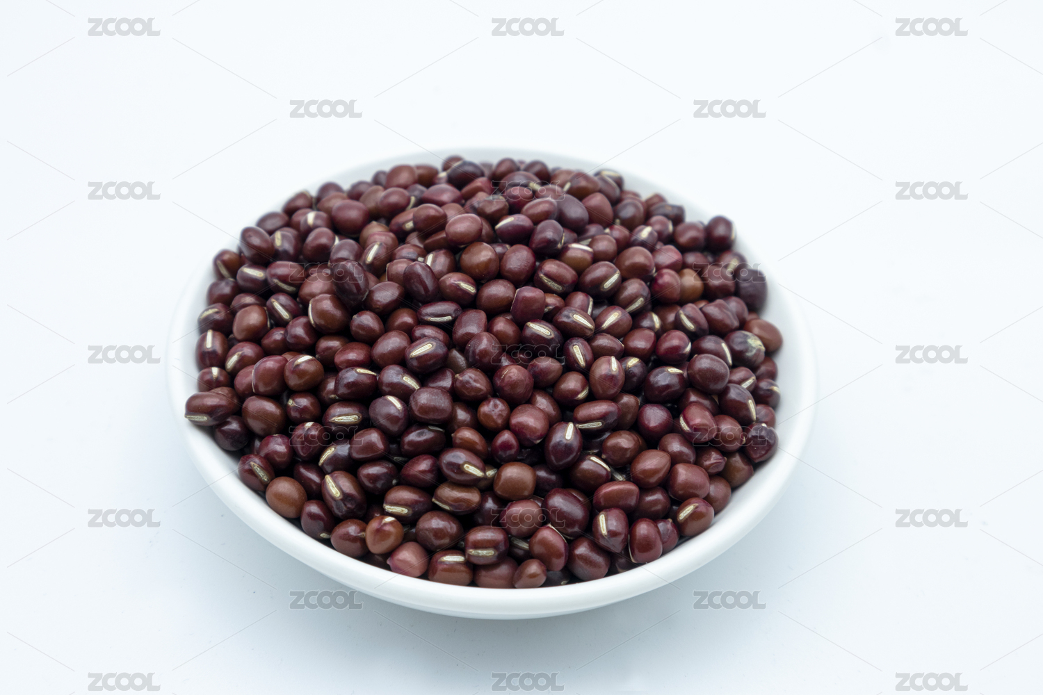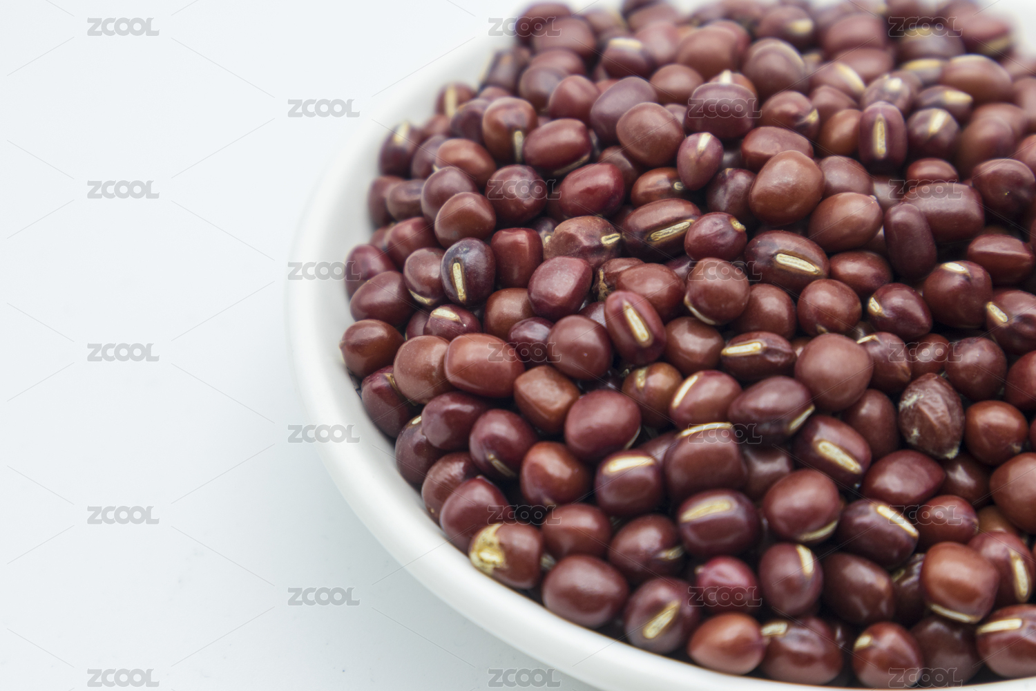 白色背景上一個盤子裝滿紅豆
