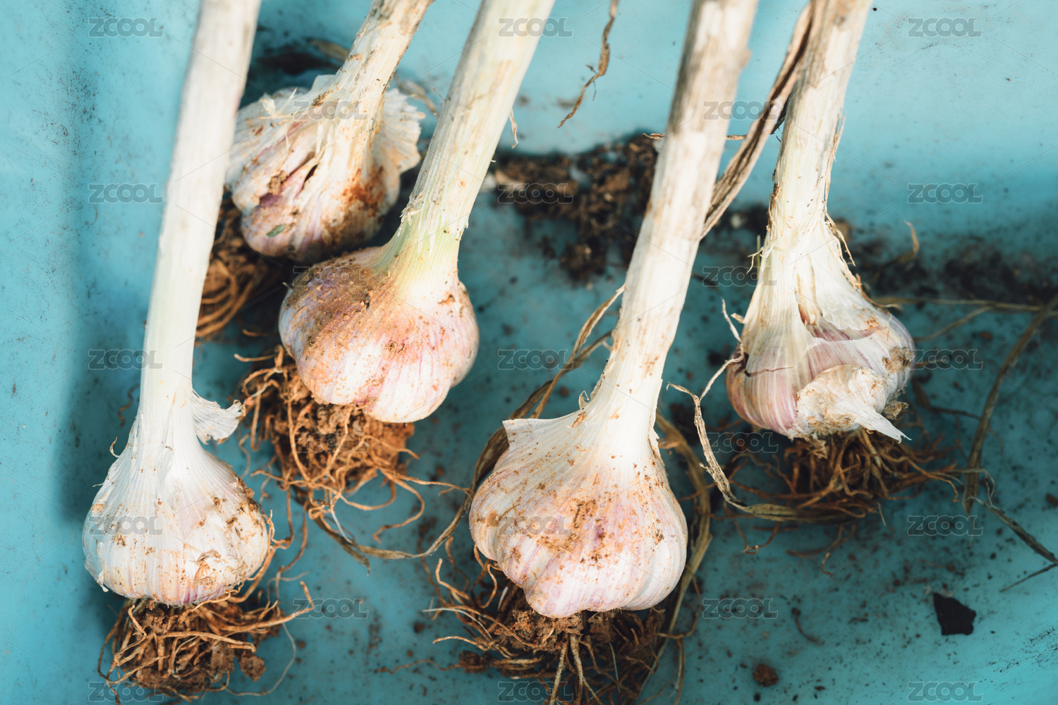 有泥土的新鮮大蒜