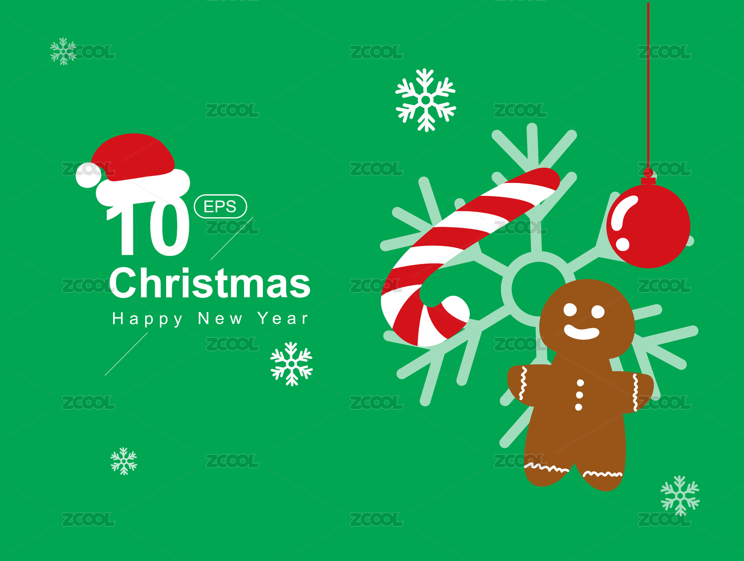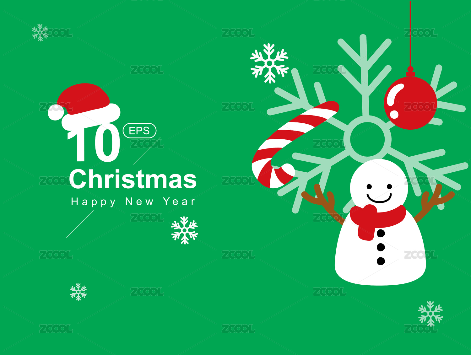 手繪風(fēng)格圣誕節(jié)場景插畫merry christmas綠色背景