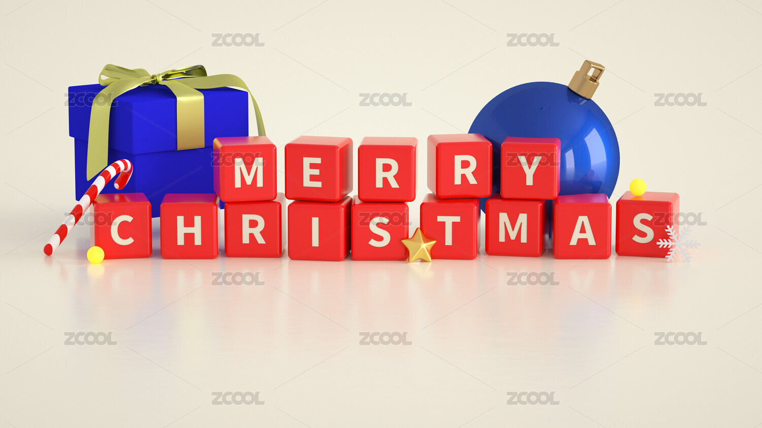 圣誕節(jié)題材的Merry Christmas積木字和禮物盒、裝飾球,3d渲染