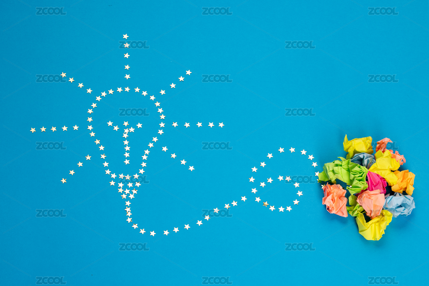 星星組成的燈泡圖案和便簽紙團(tuán)