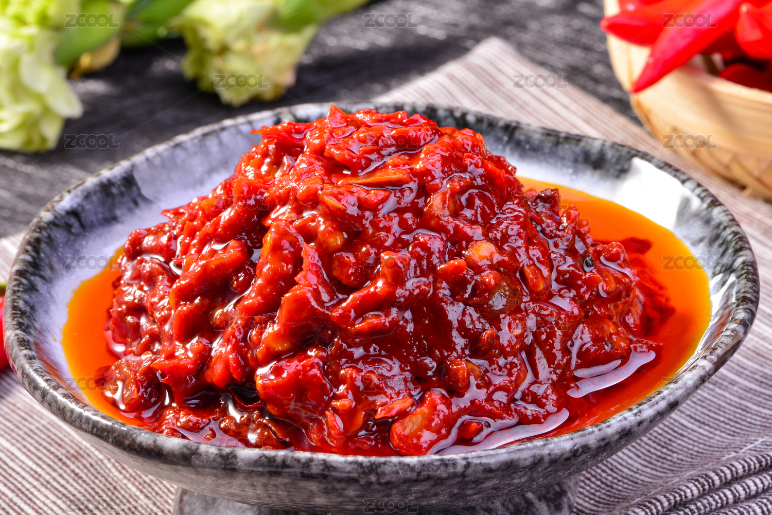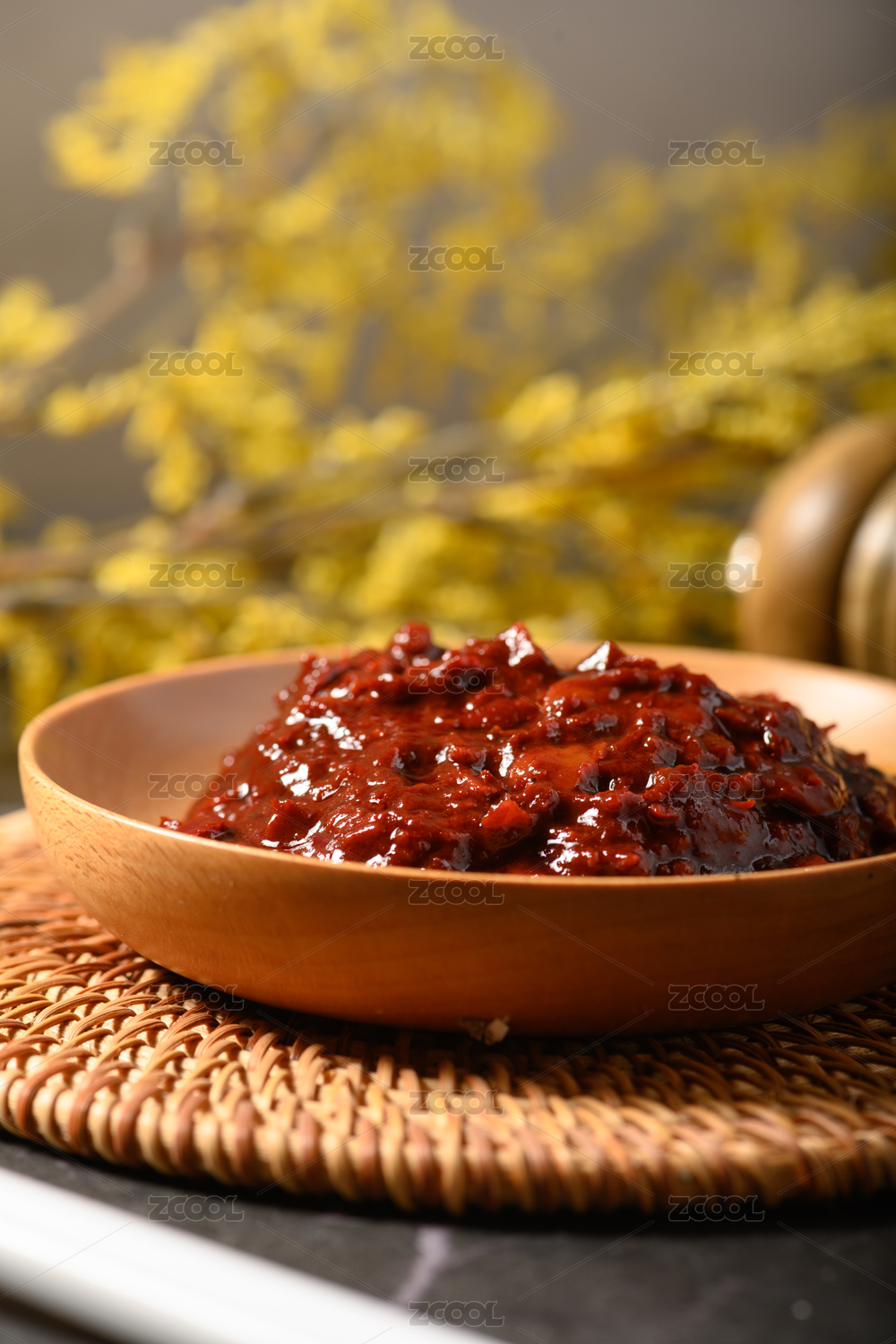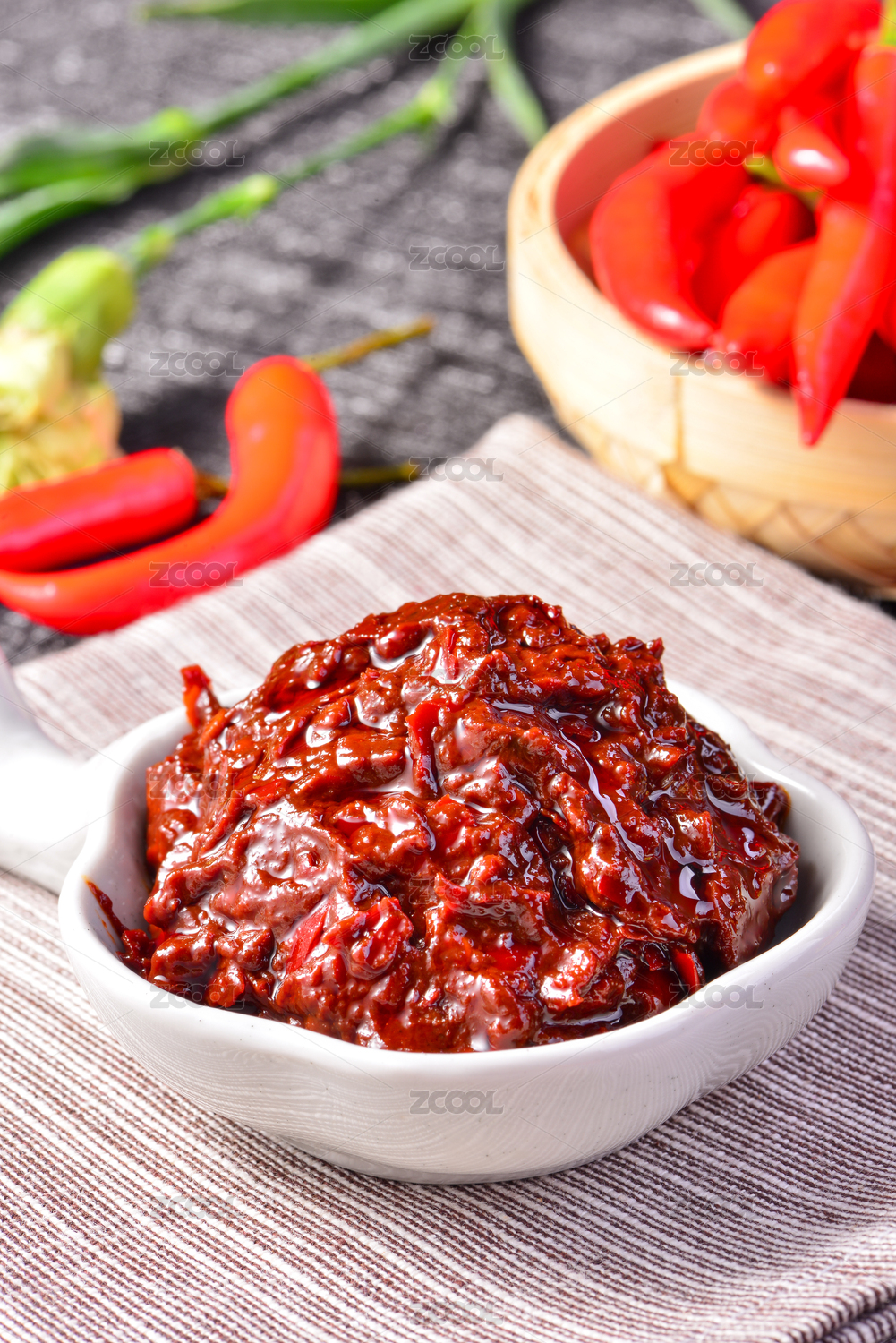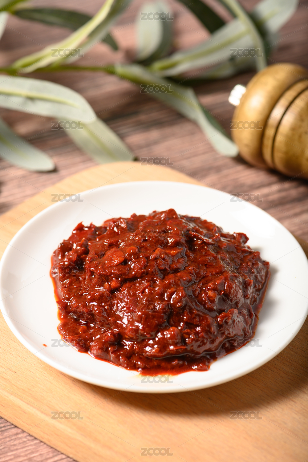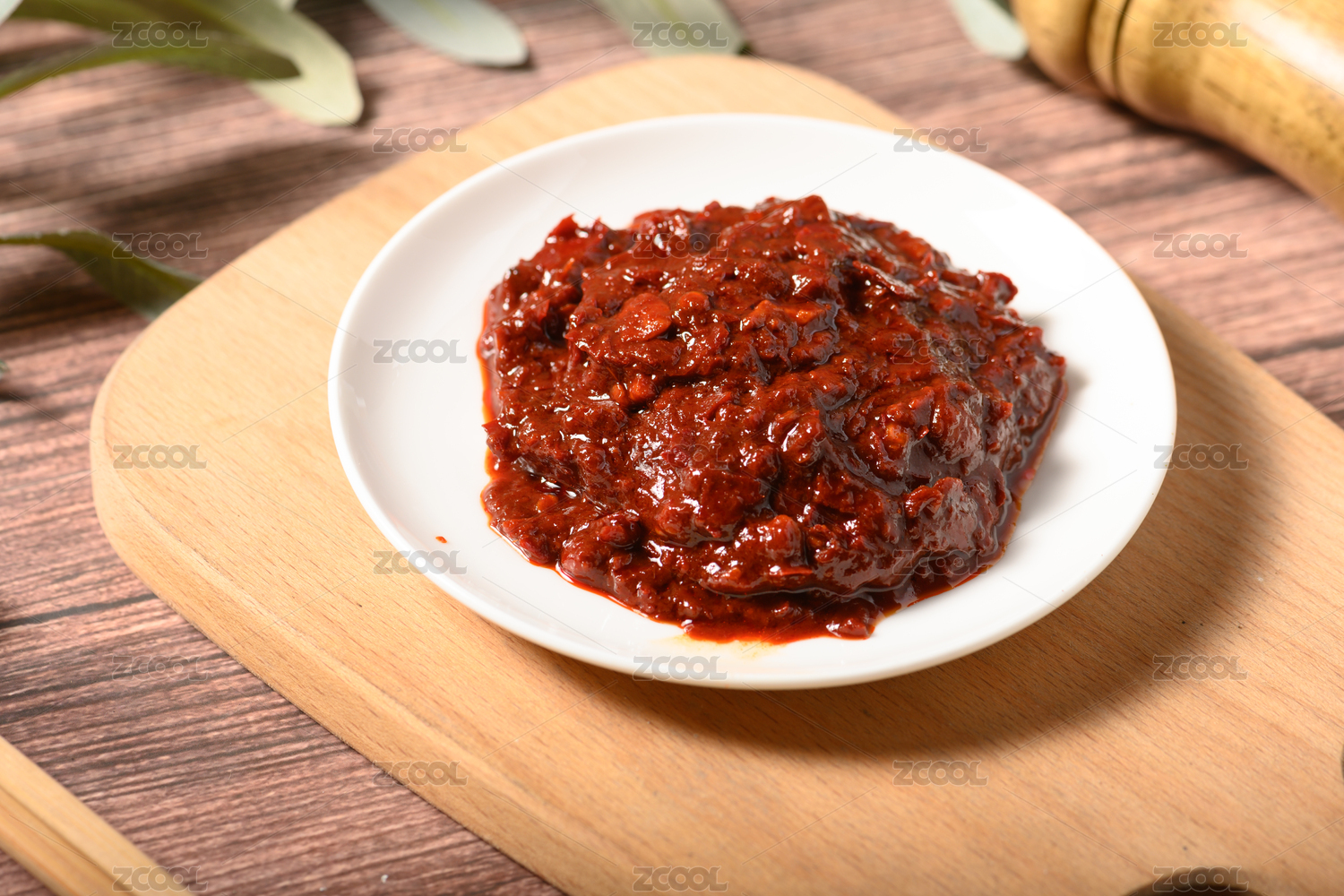桌面上的盤子里的美味可口的傳統(tǒng)豆瓣醬