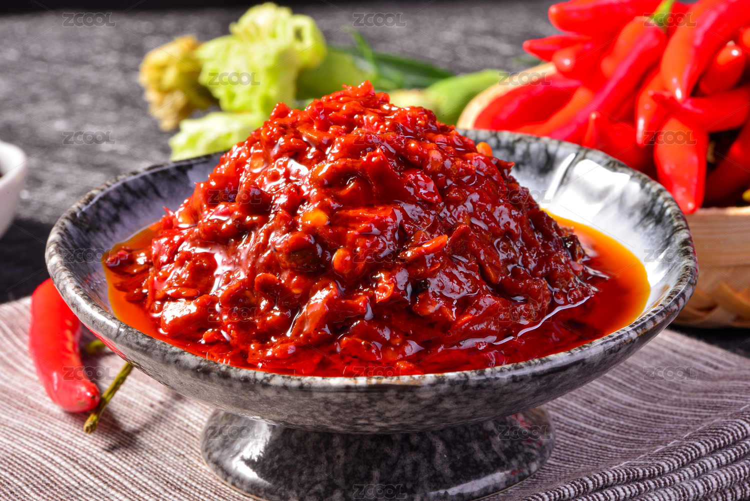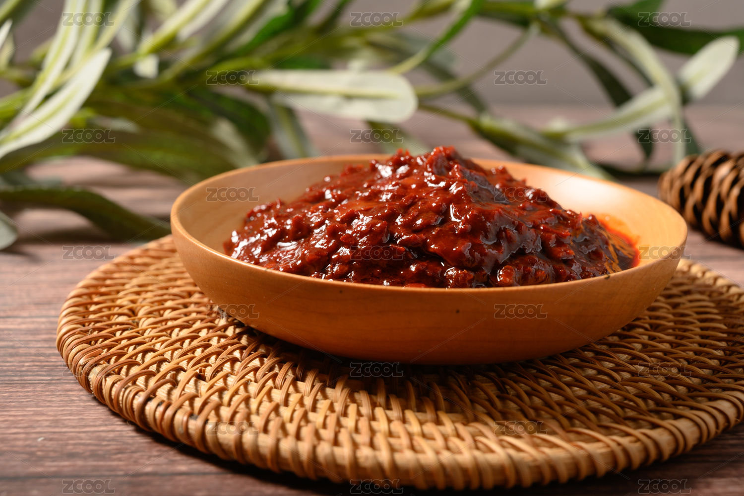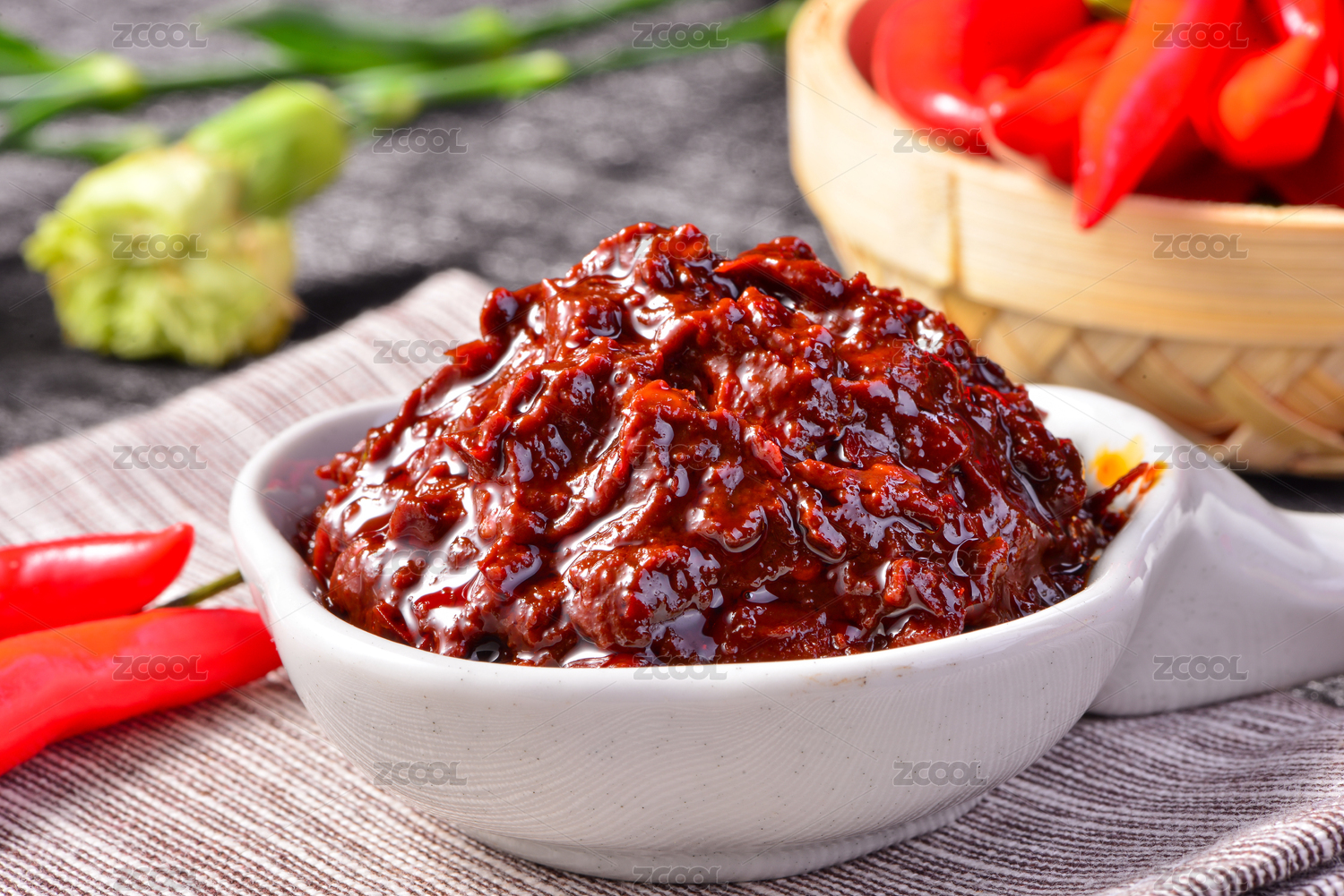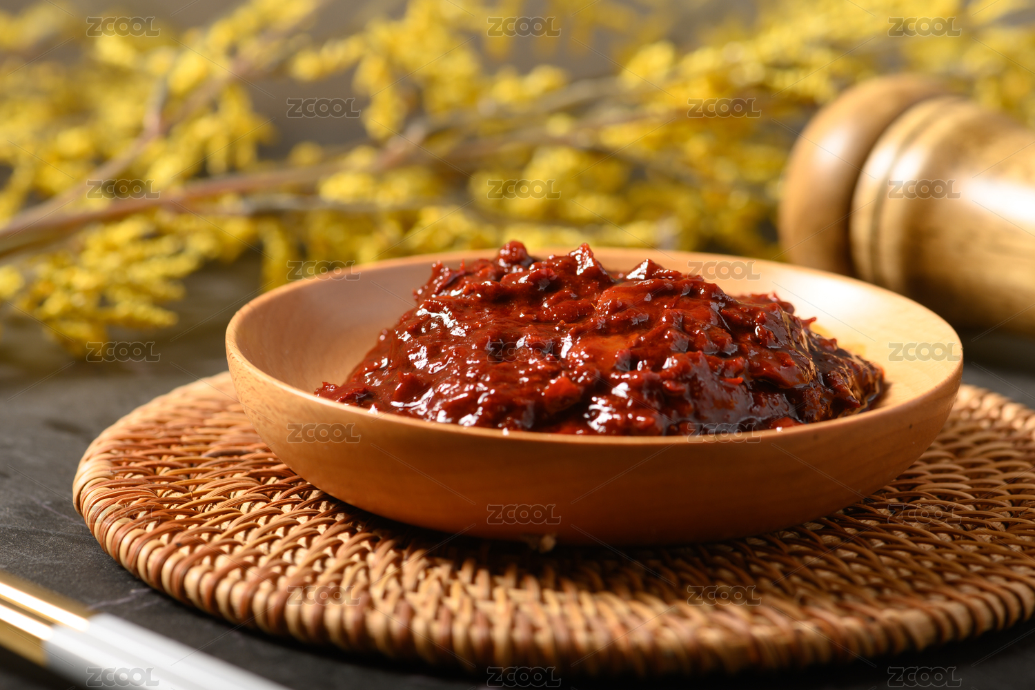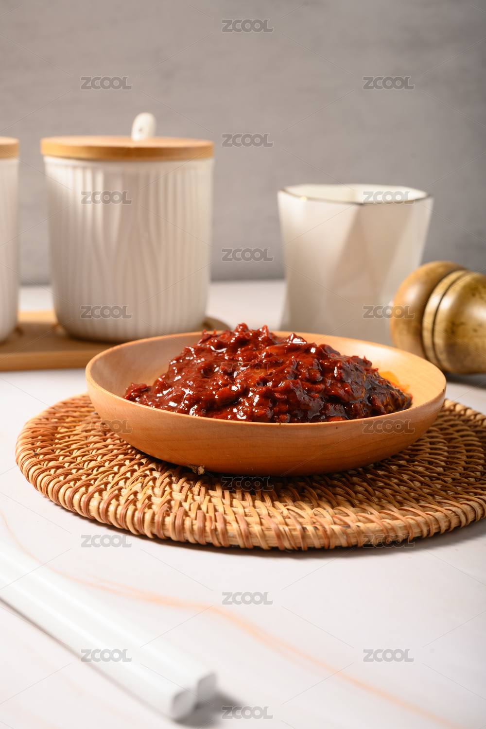 桌面上的盤子里的美味可口的傳統(tǒng)豆瓣醬