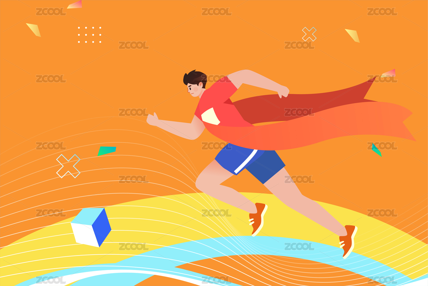 手繪插畫跑步賽跑運動