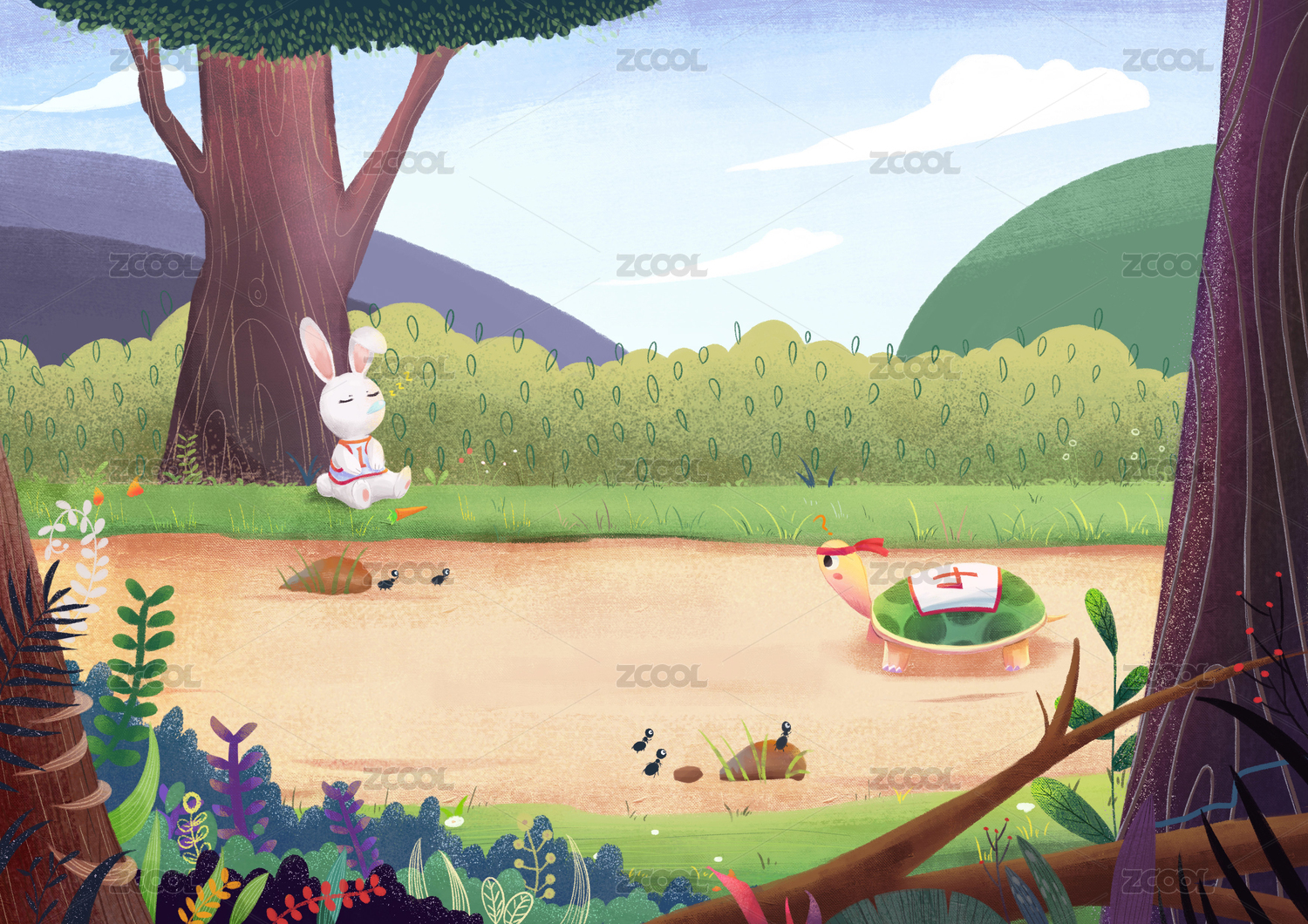 龜兔賽跑故事兒童插畫
