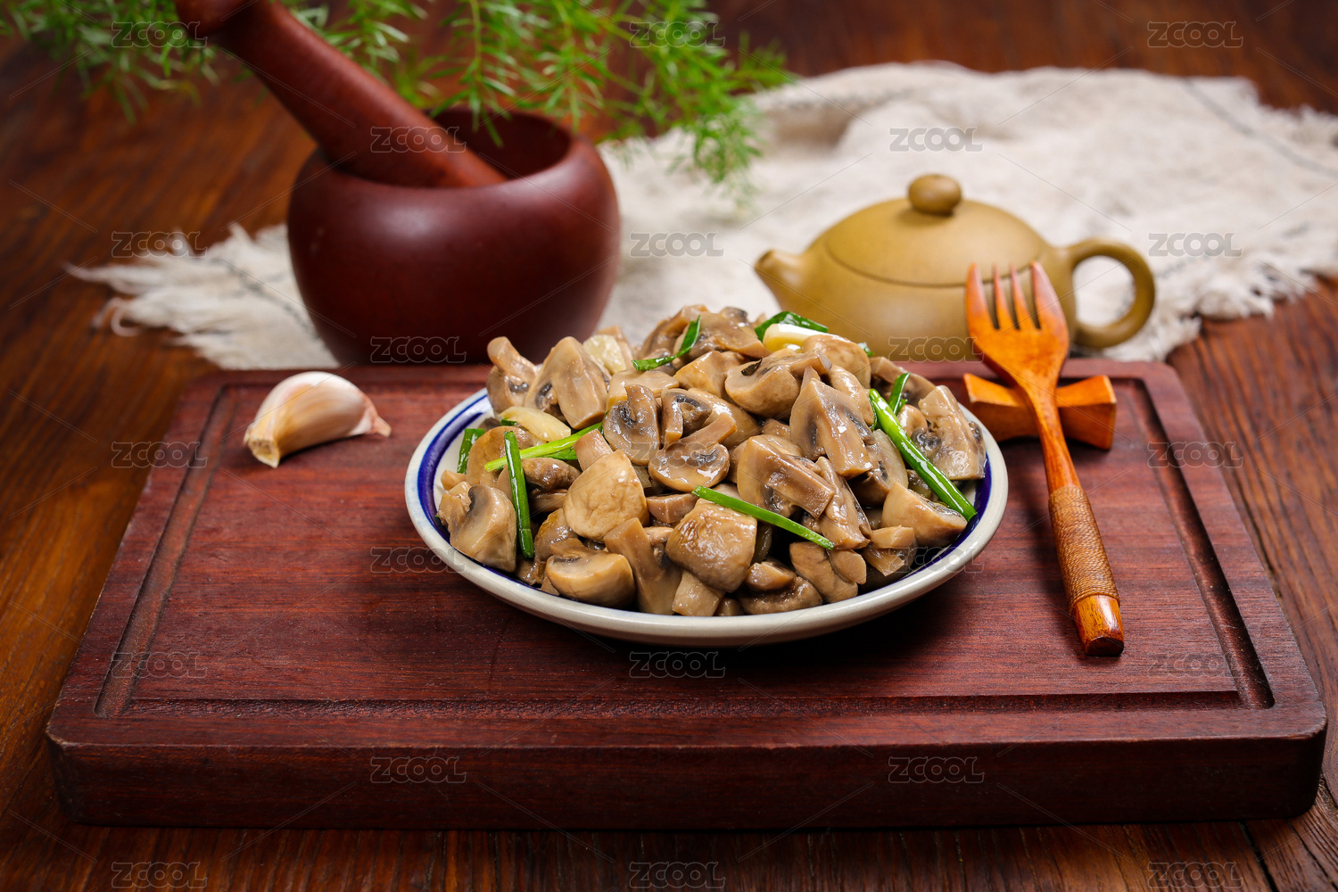 家常小炒菜肴蔥香白蘑菇