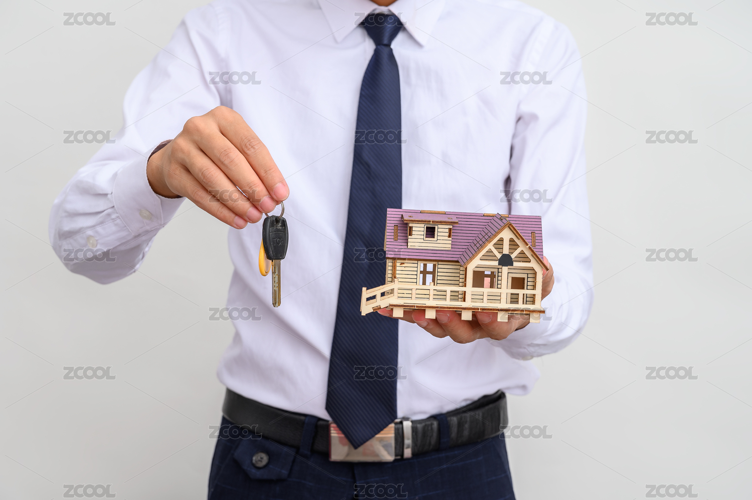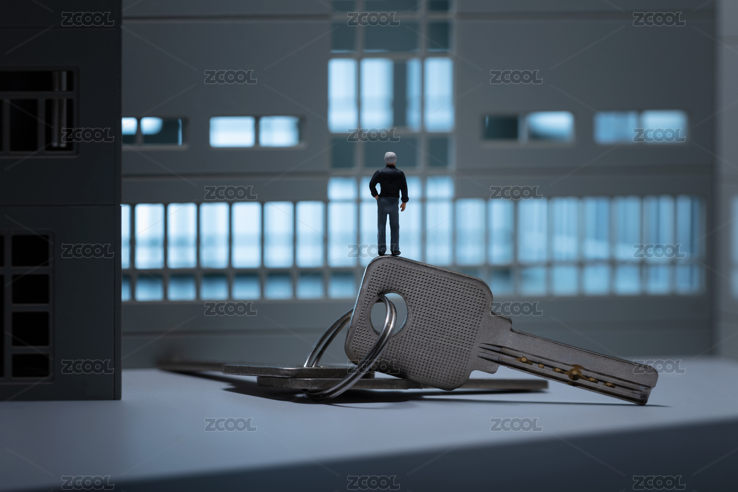 微縮創(chuàng)意在建房屋鑰匙上站著的男性