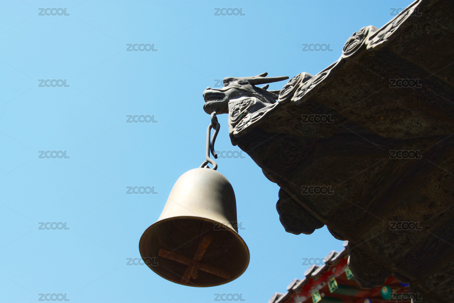 古建筑屋檐上的銅鈴與龍雕