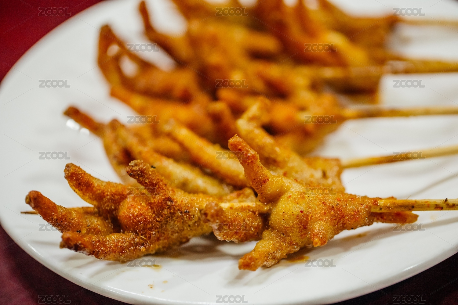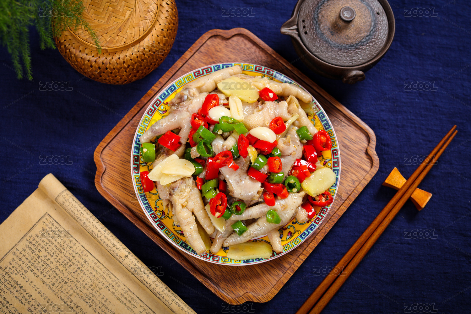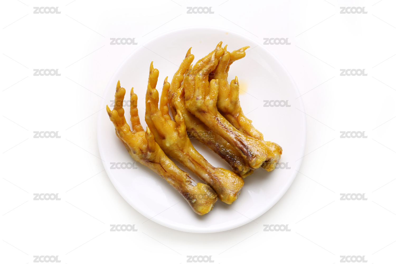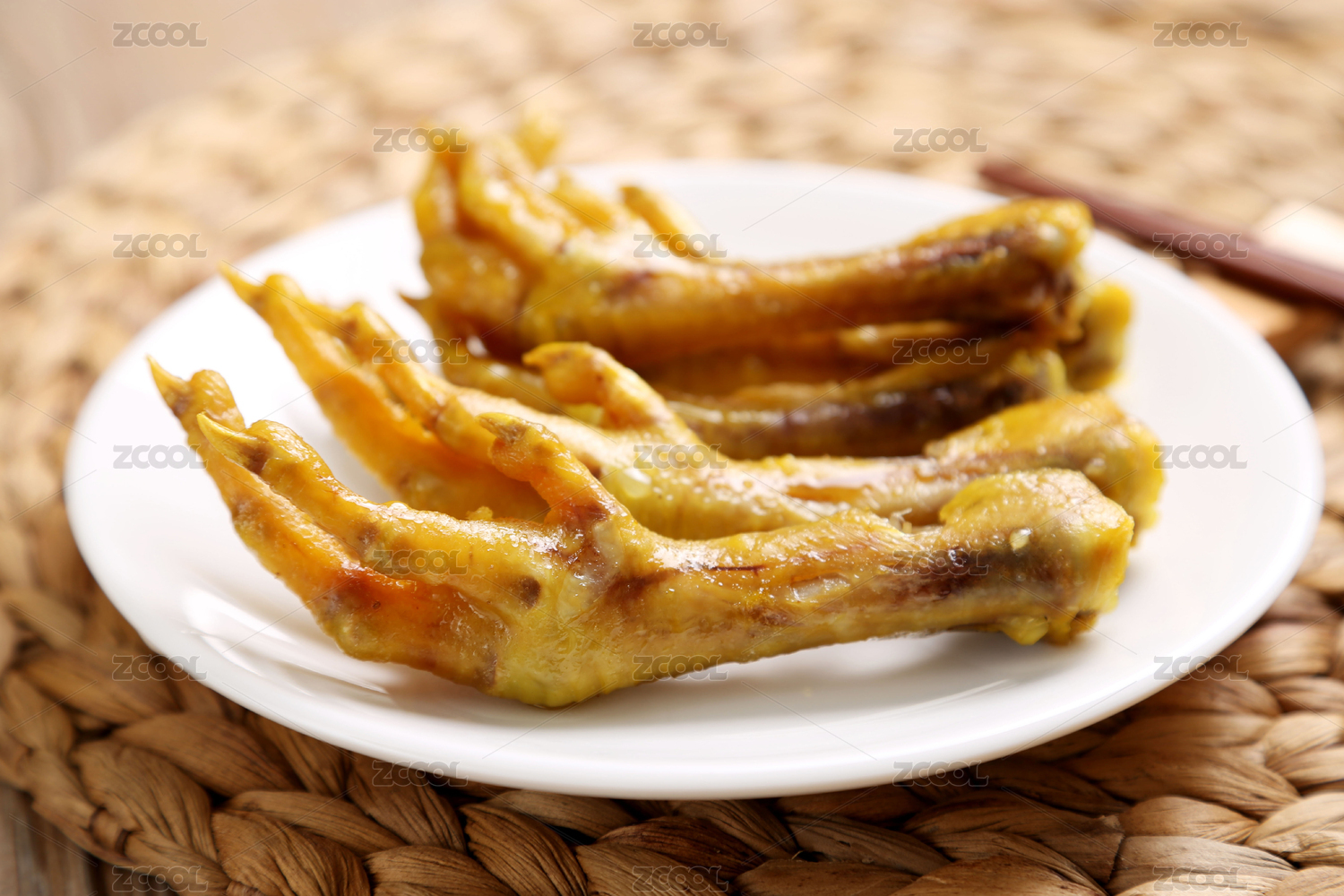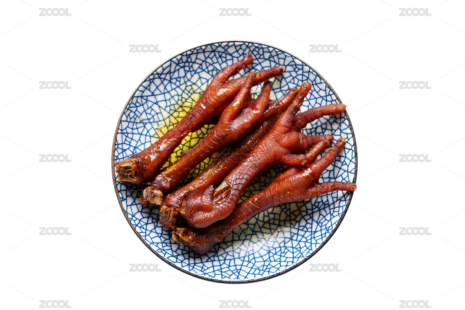 藍(lán)白瓷盤(pán)上的豉油雞腳