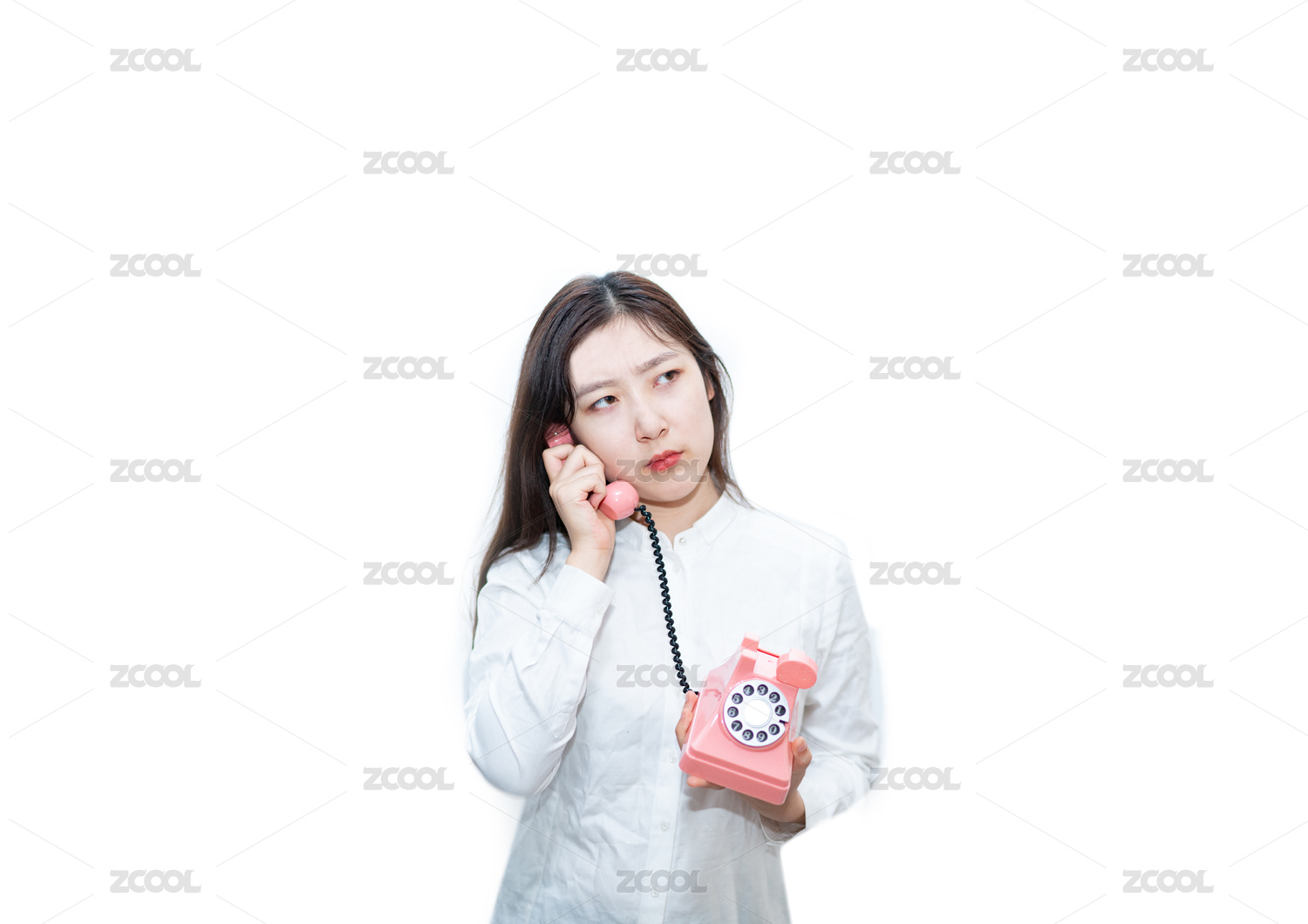 年輕女醫(yī)生在工作中有問題的問題。隔絕在白色背景。亞洲女模特。醫(yī)療和健康理念