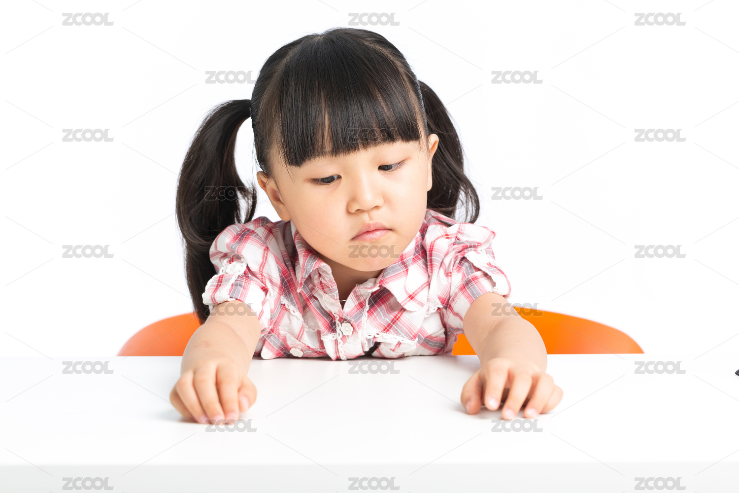 小女孩失望的趴在桌子上