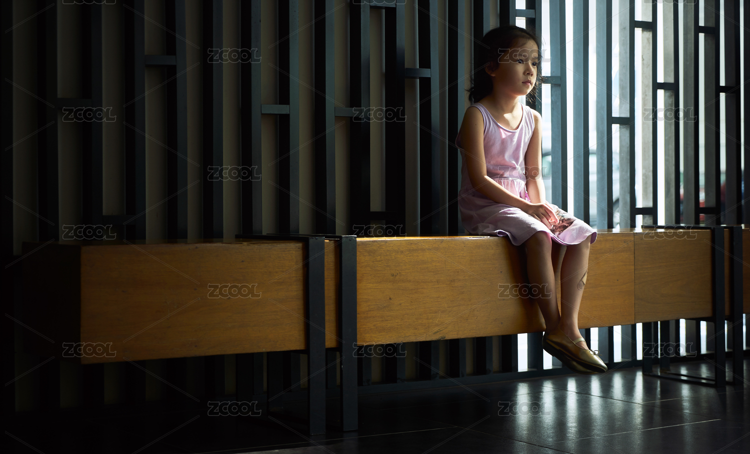 坐著等待和失望的小女孩