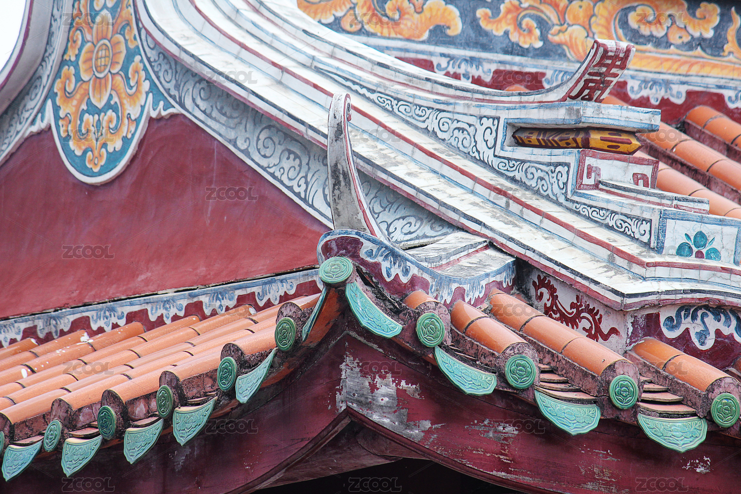 福建省泉州市天后宮屋燕尾脊上的剪瓷雕工藝