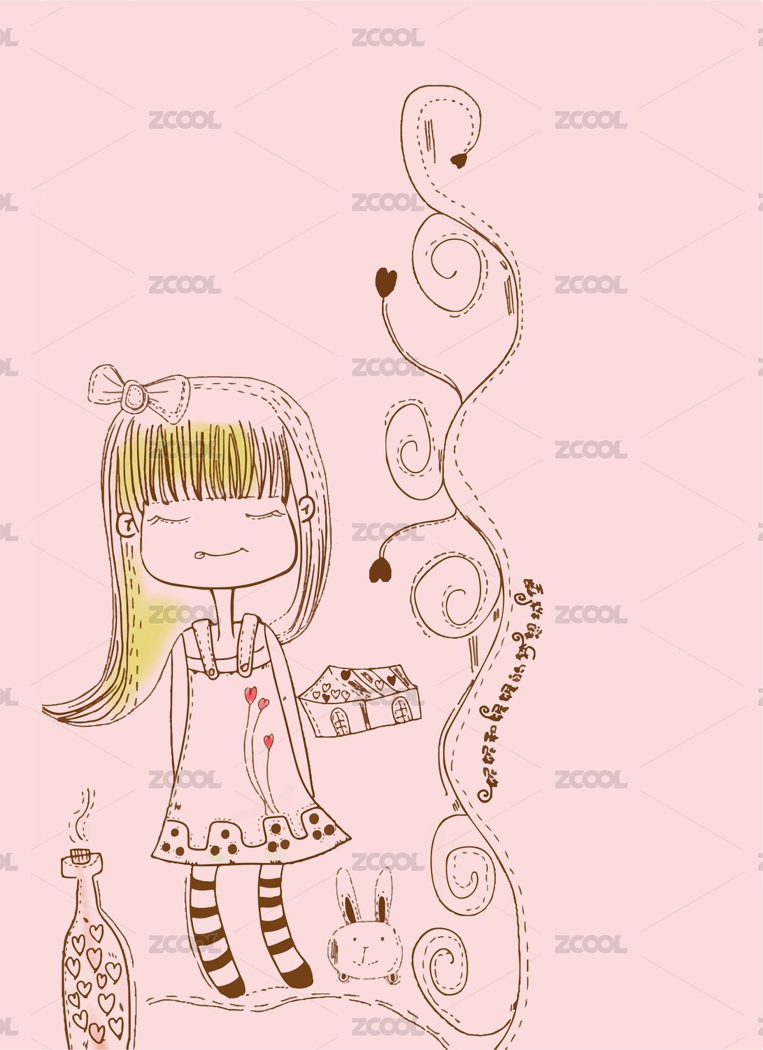 可愛女孩兒幼兒涂鴉手繪線條插畫