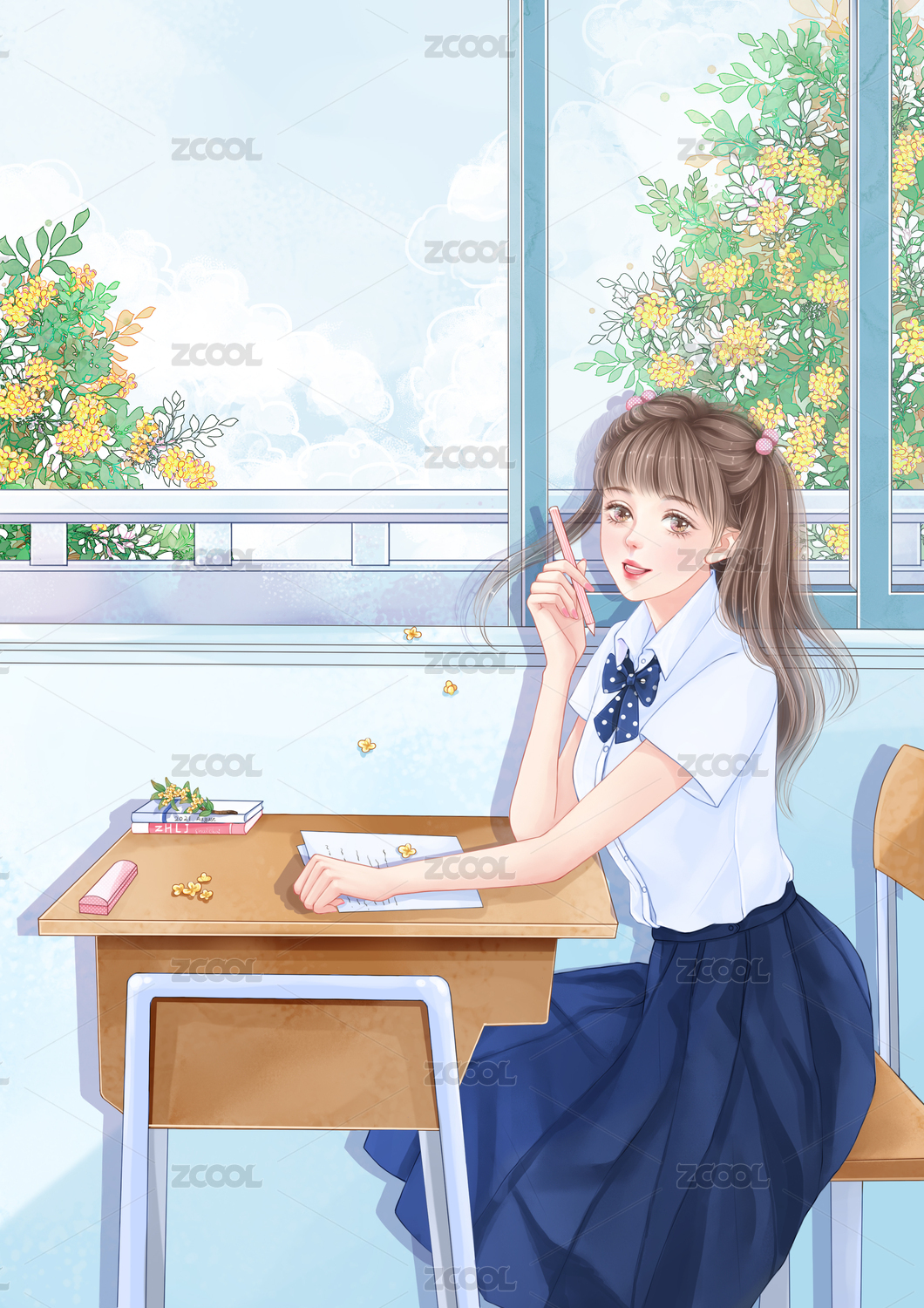 教室窗戶邊的女孩兒和桂花香