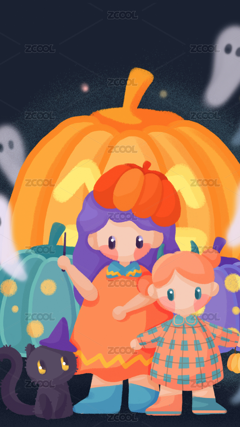 貓咪和姐妹兩人的萬圣節(jié)