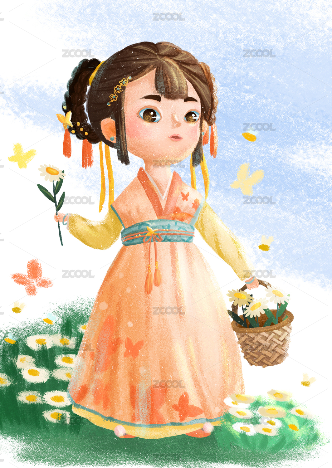 花叢中的古裝小女孩兒