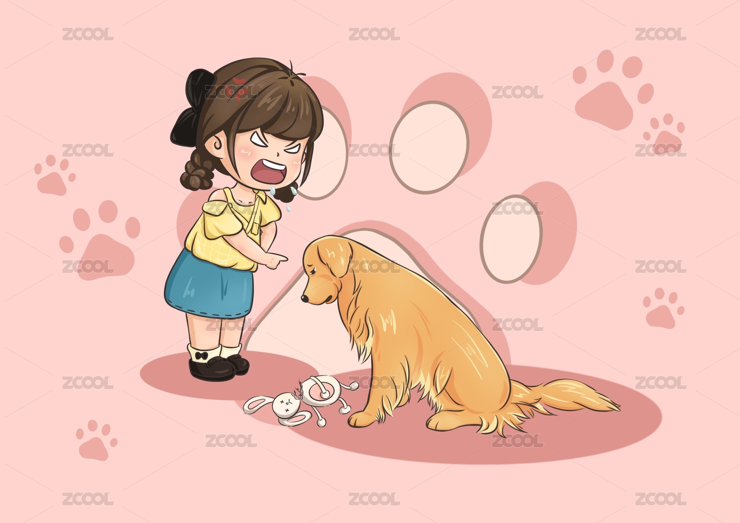 教育狗狗的女孩兒