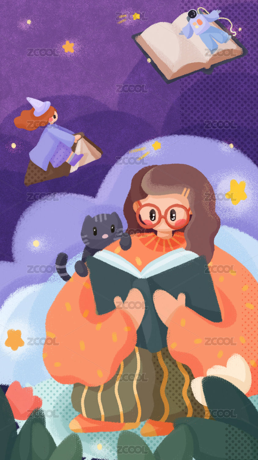 沉浸在閱讀世界里的小女孩兒