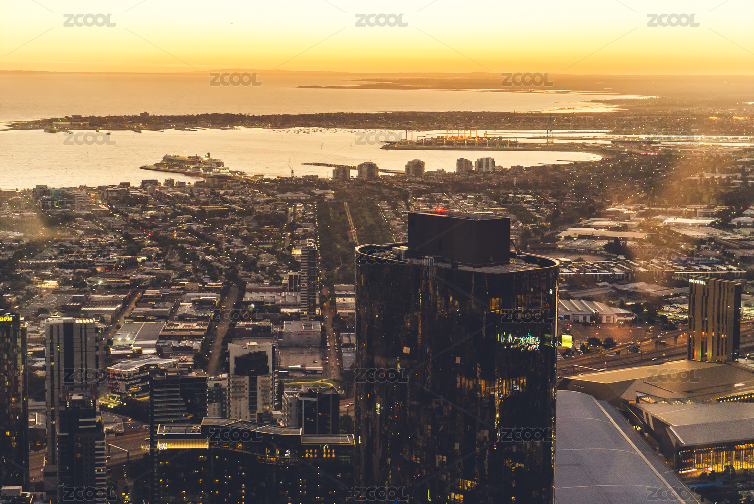 澳大利亞墨爾本城市夜景空中鳥(niǎo)瞰