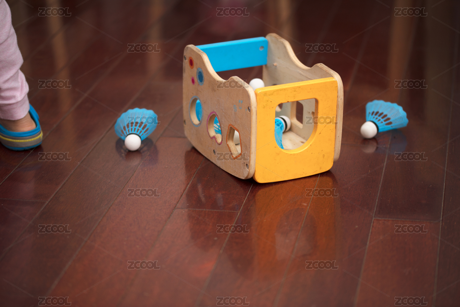 木質(zhì)地板上的小凳子和羽毛球