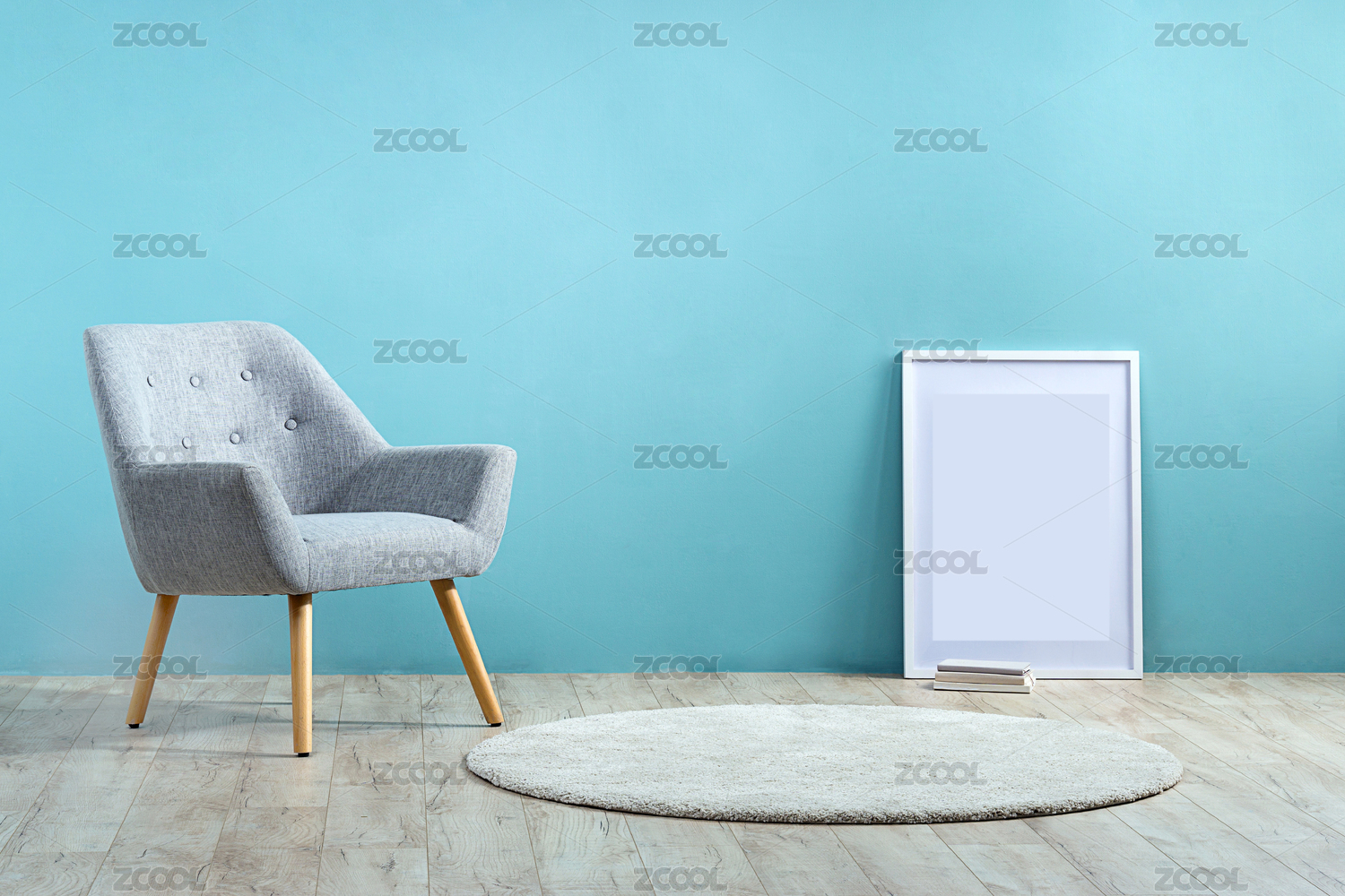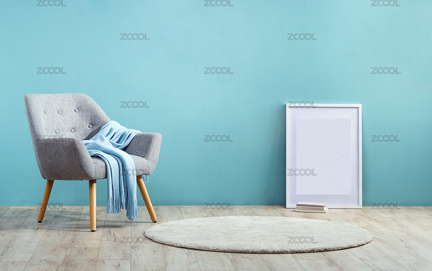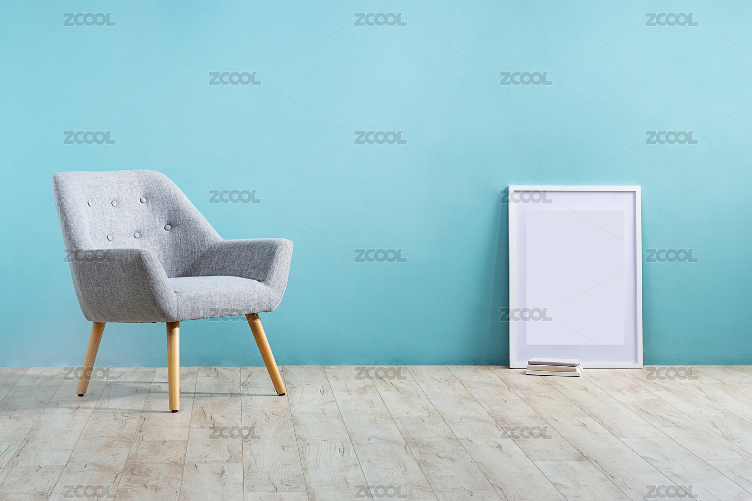木質(zhì)地板藍色背景下的沙發(fā)