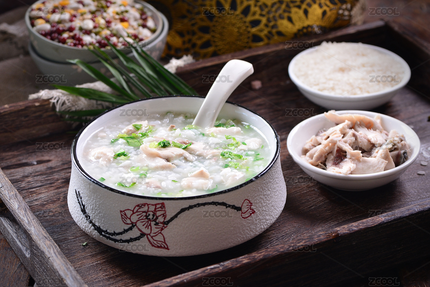 一碗生滾魚片粥放在木質(zhì)地板上