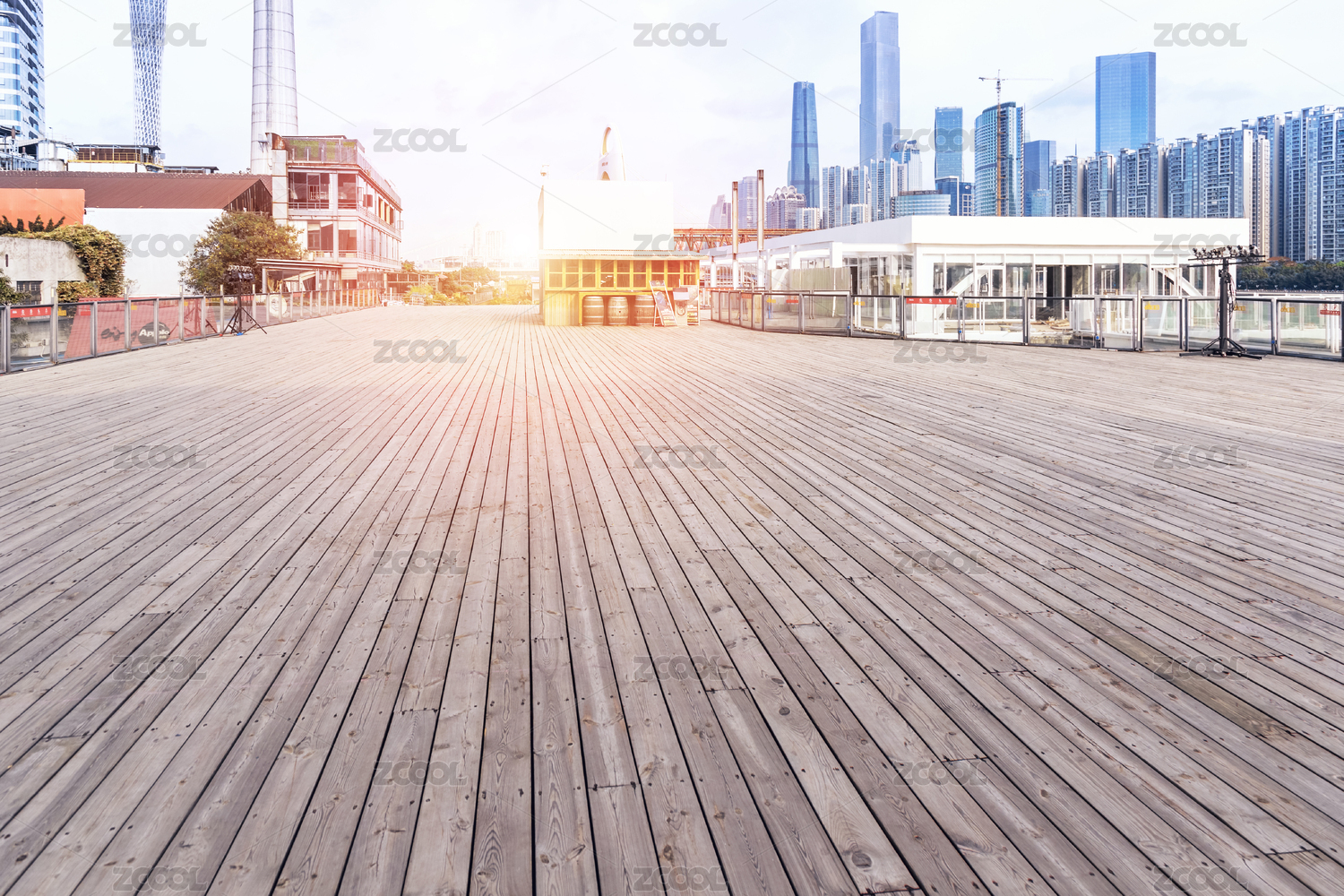 木質(zhì)地板廣場與城市風(fēng)光