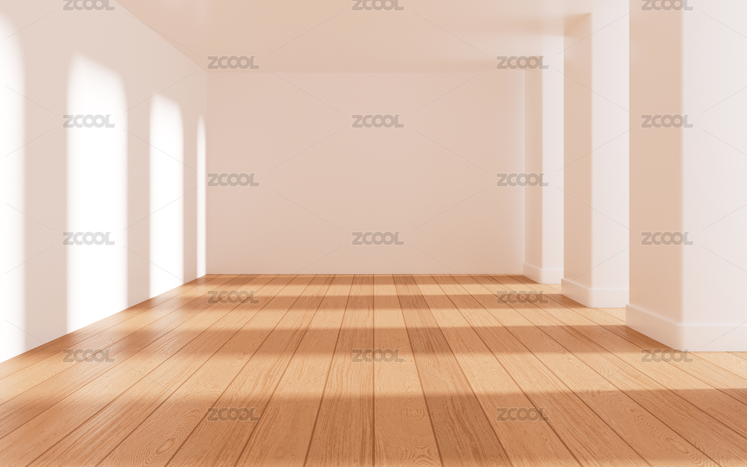 木質(zhì)地板的空房間3D渲染