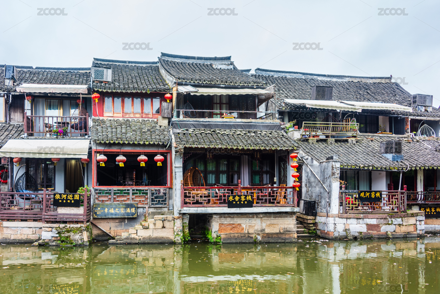 中國浙江嘉興嘉善西塘古鎮(zhèn)老建筑臨水民居