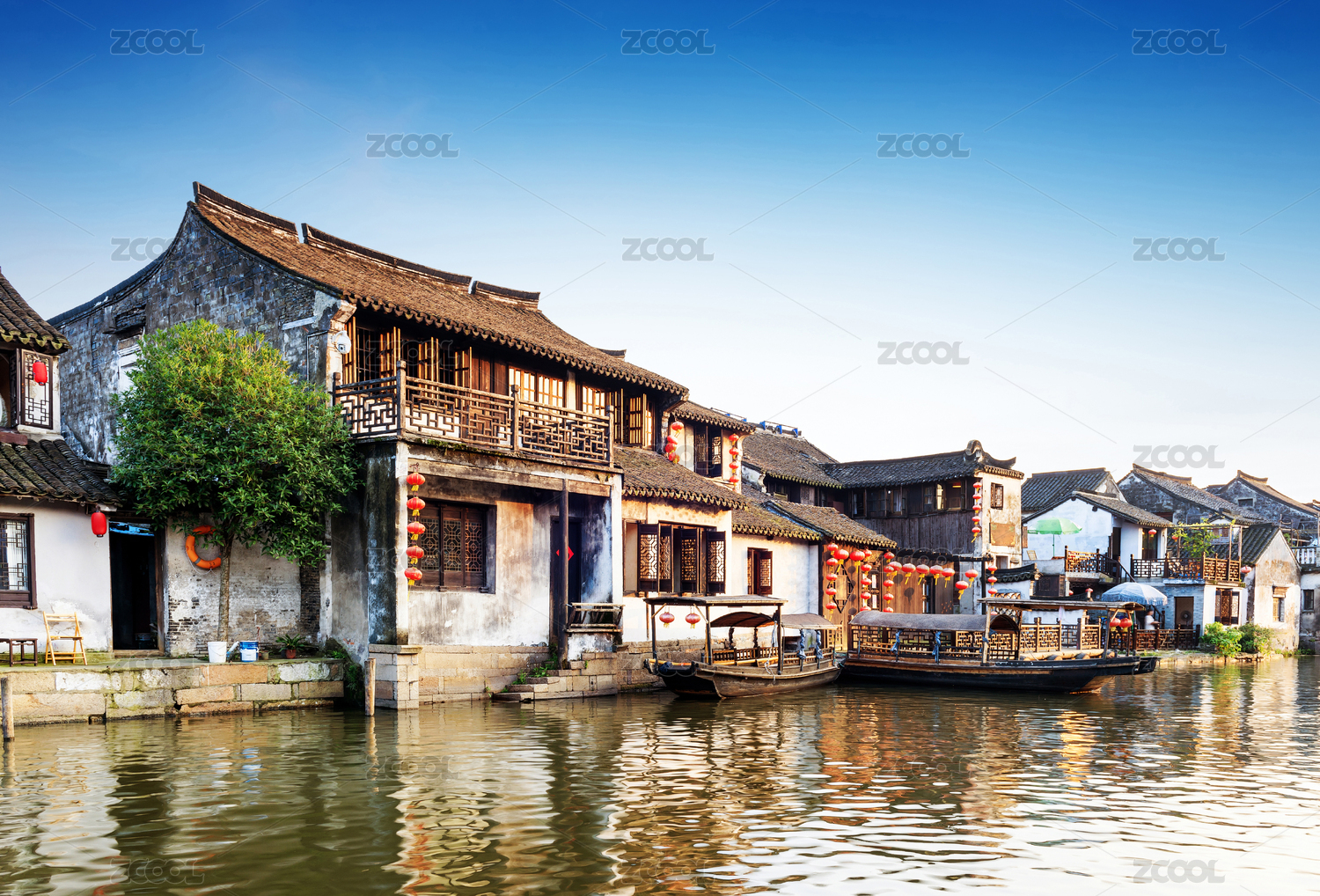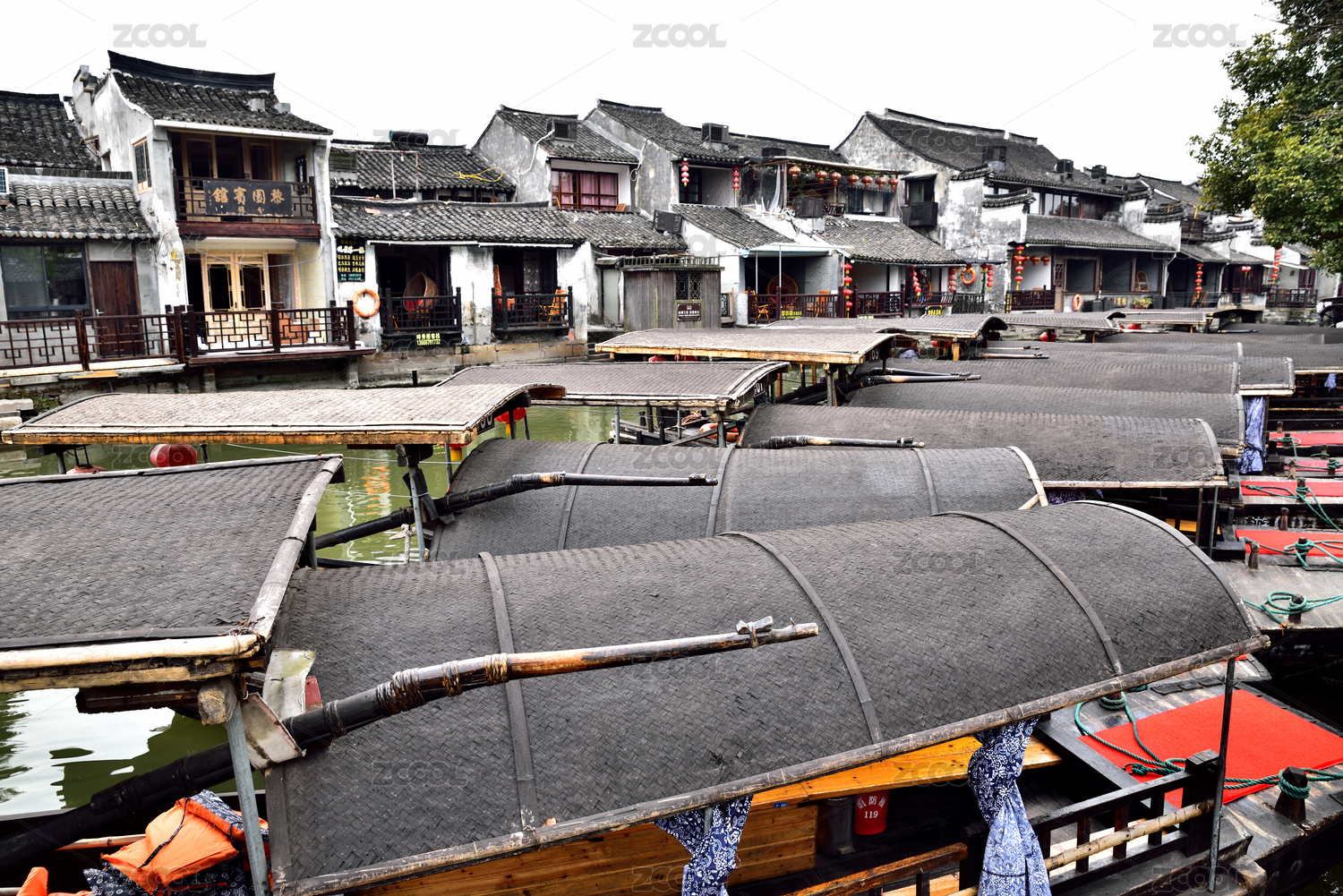 中國浙江嘉興嘉善西塘古鎮(zhèn)手搖船碼頭