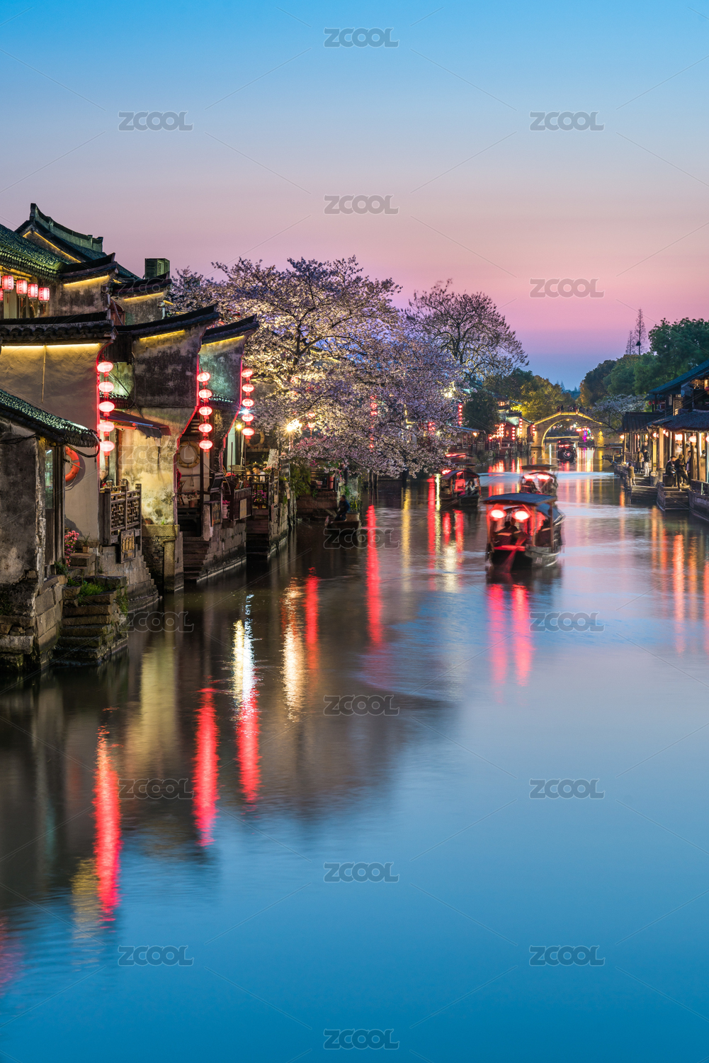 中國浙江歷史文化名鎮(zhèn)西塘古鎮(zhèn)夜景