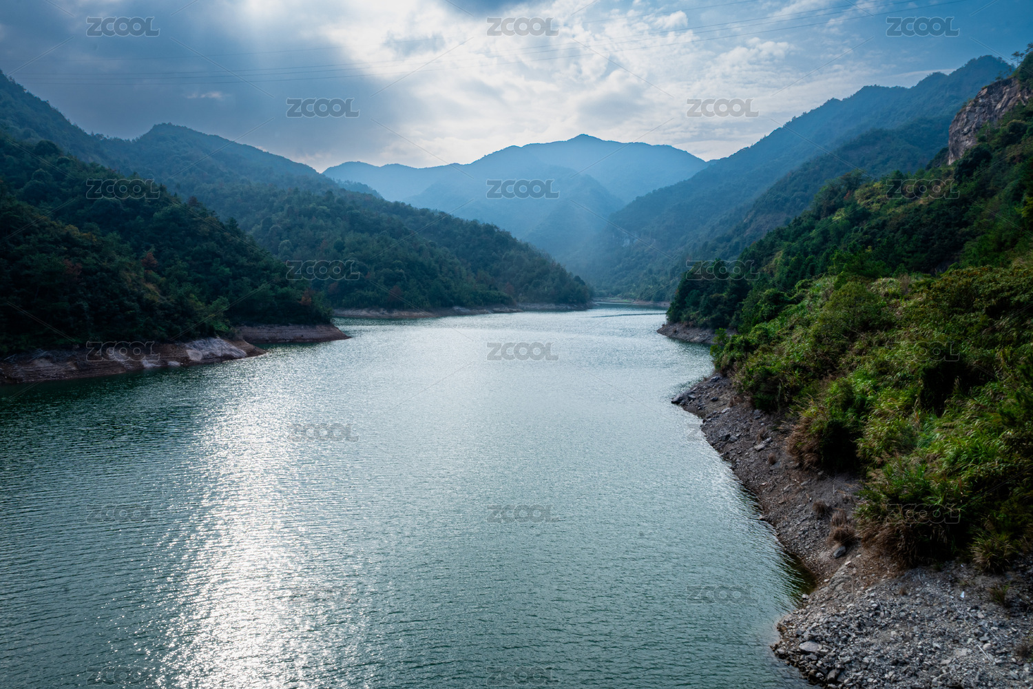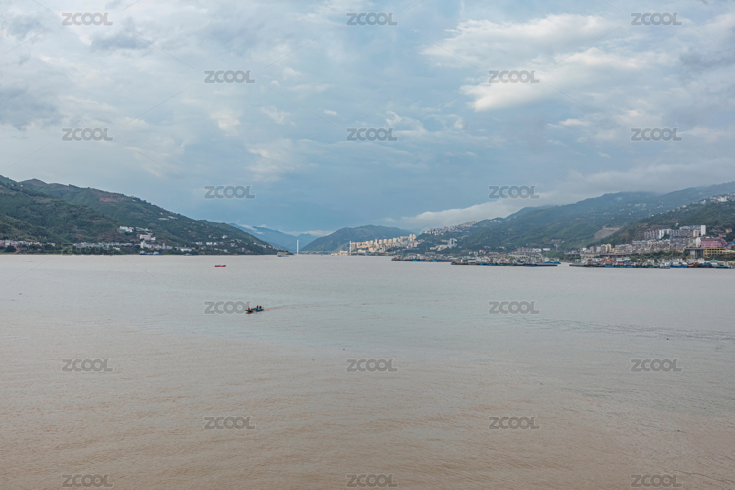 中國重慶奉節(jié)縣江上孤舟與青山景致