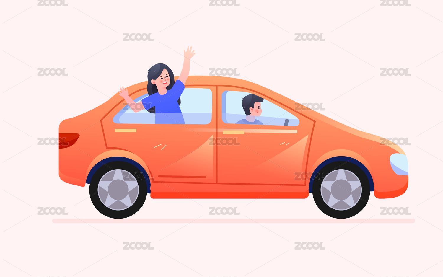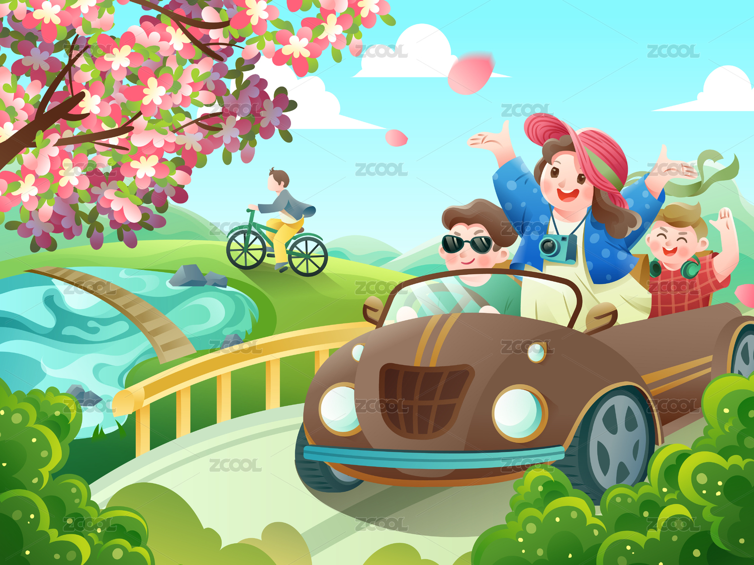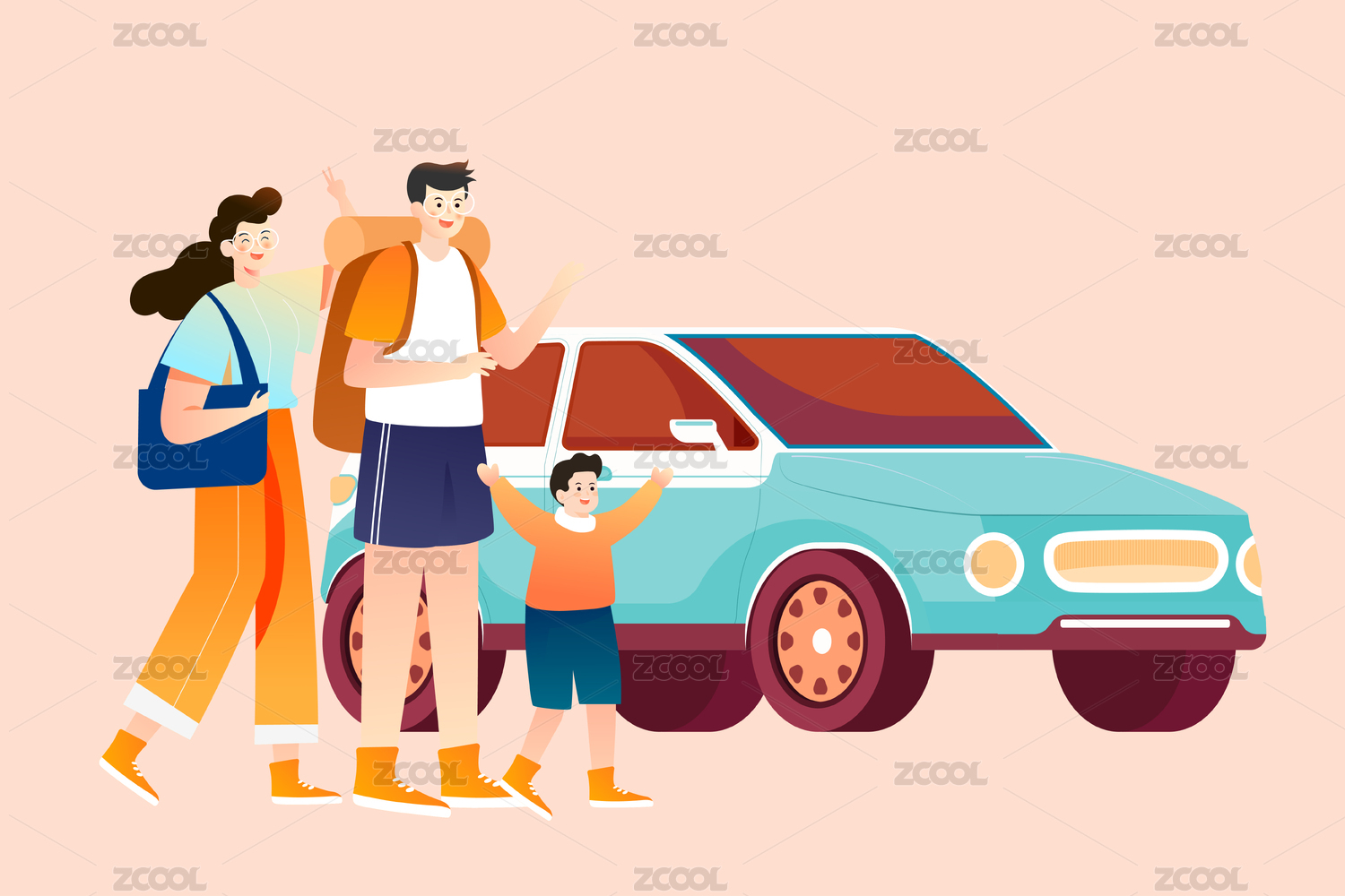五一勞動節(jié)放假一家人自駕游出行度假插畫
