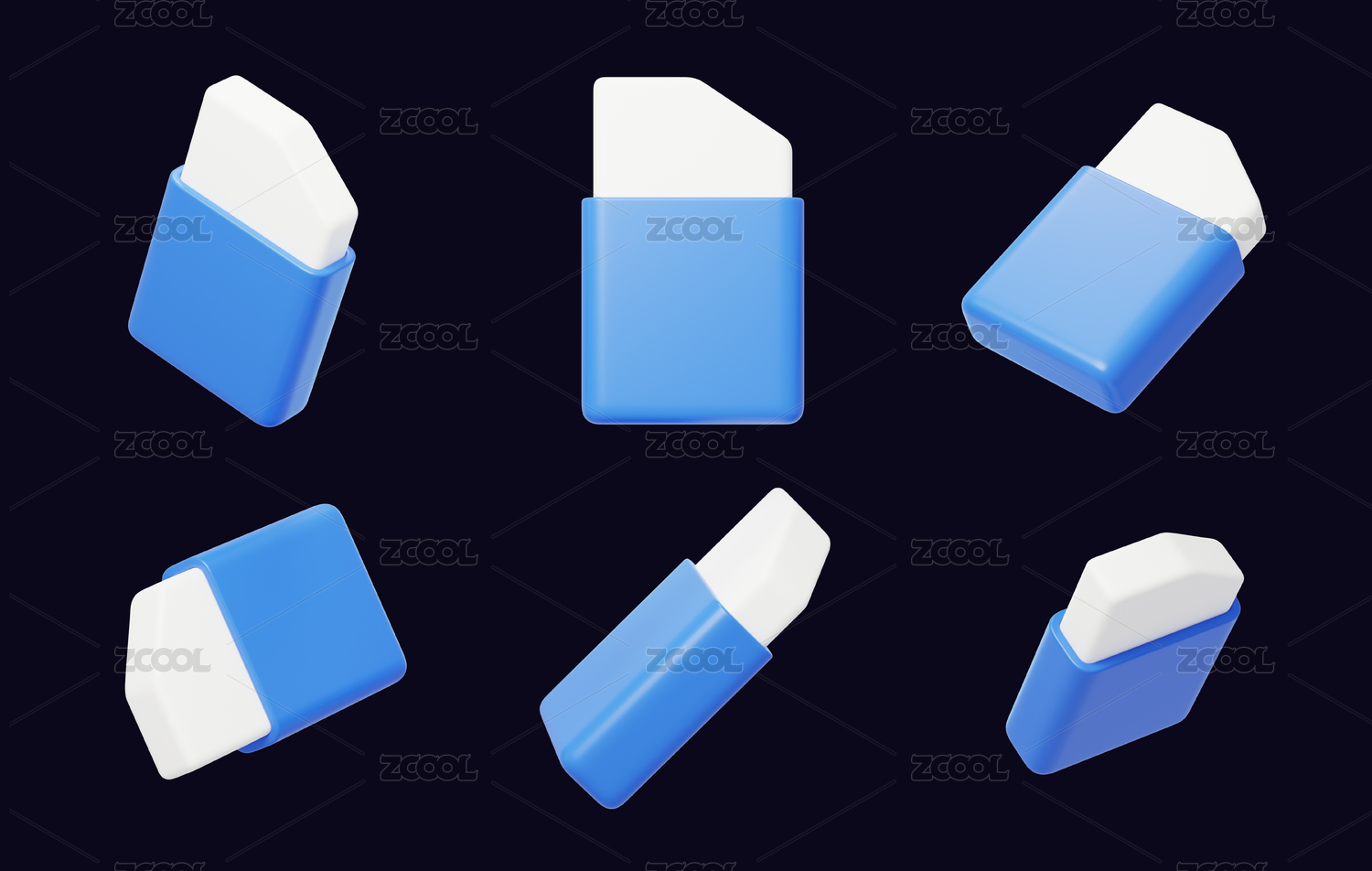 藍(lán)白色橡皮擦擦除透明磨砂繪畫3D圖標(biāo)