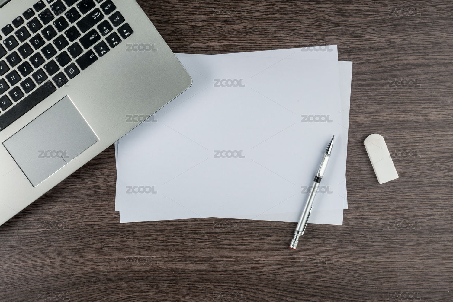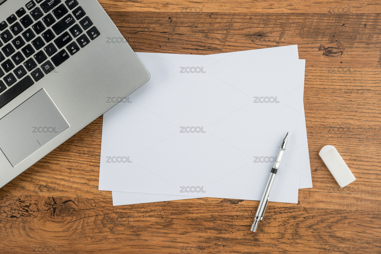 筆記本電腦,紙筆和橡皮擦辦公桌素描規(guī)劃