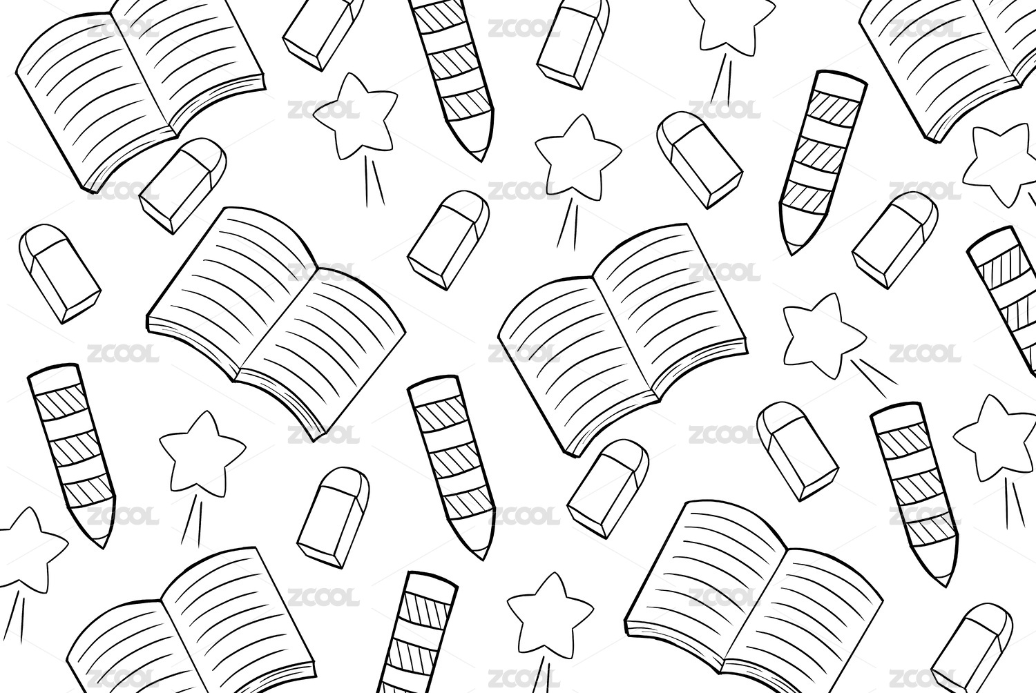 書本和鉛筆和橡皮擦和星星