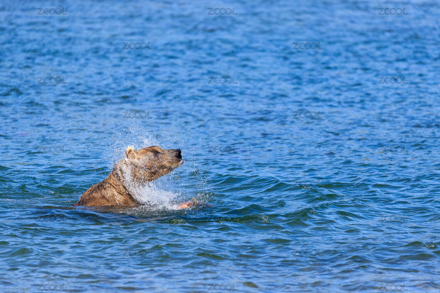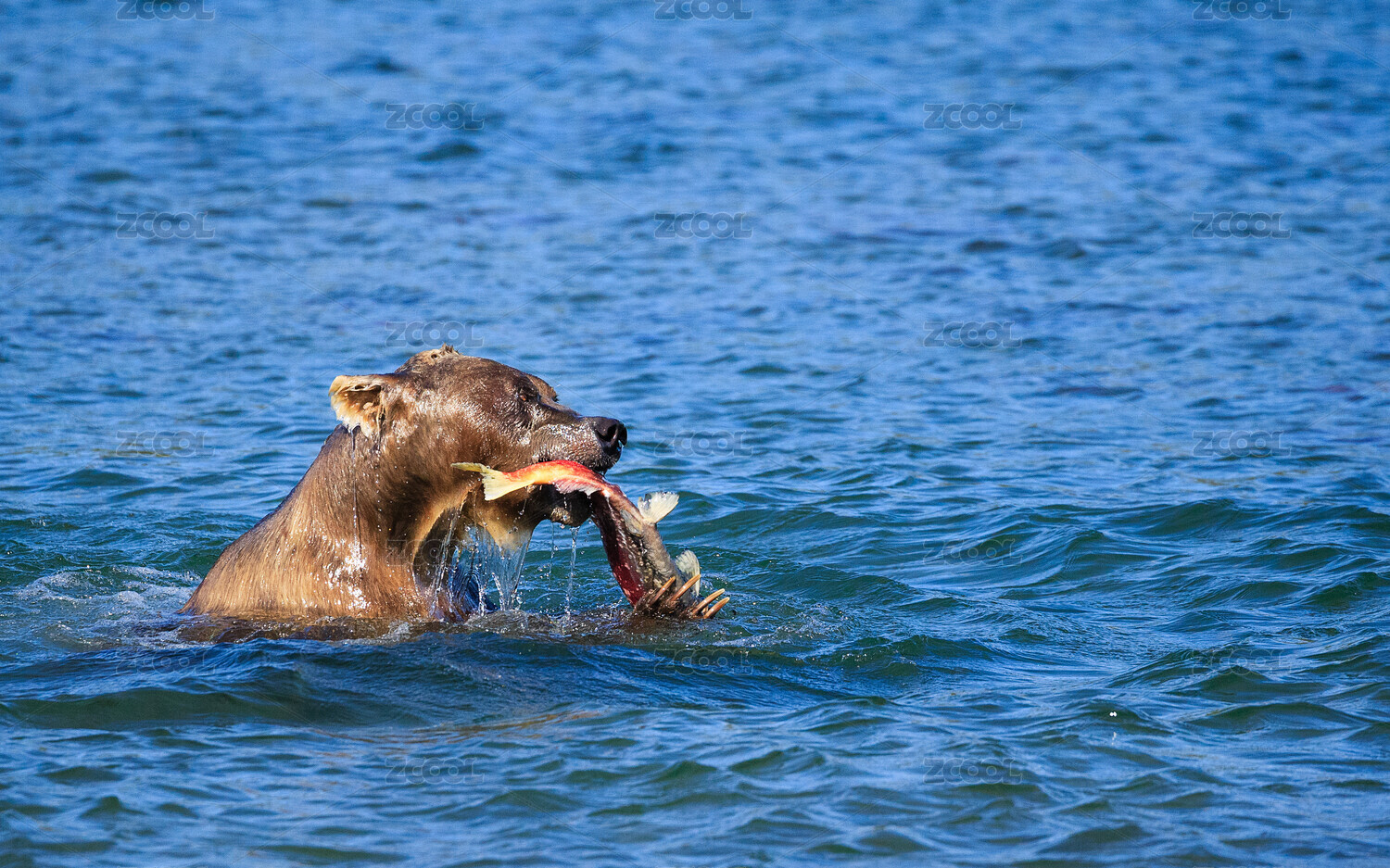 堪察加棕熊抓紅鮭魚(yú)準(zhǔn)備冬眠