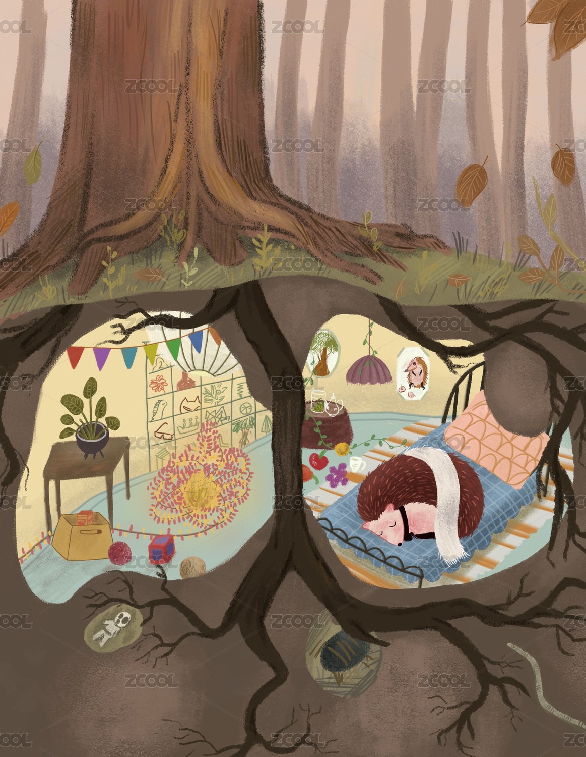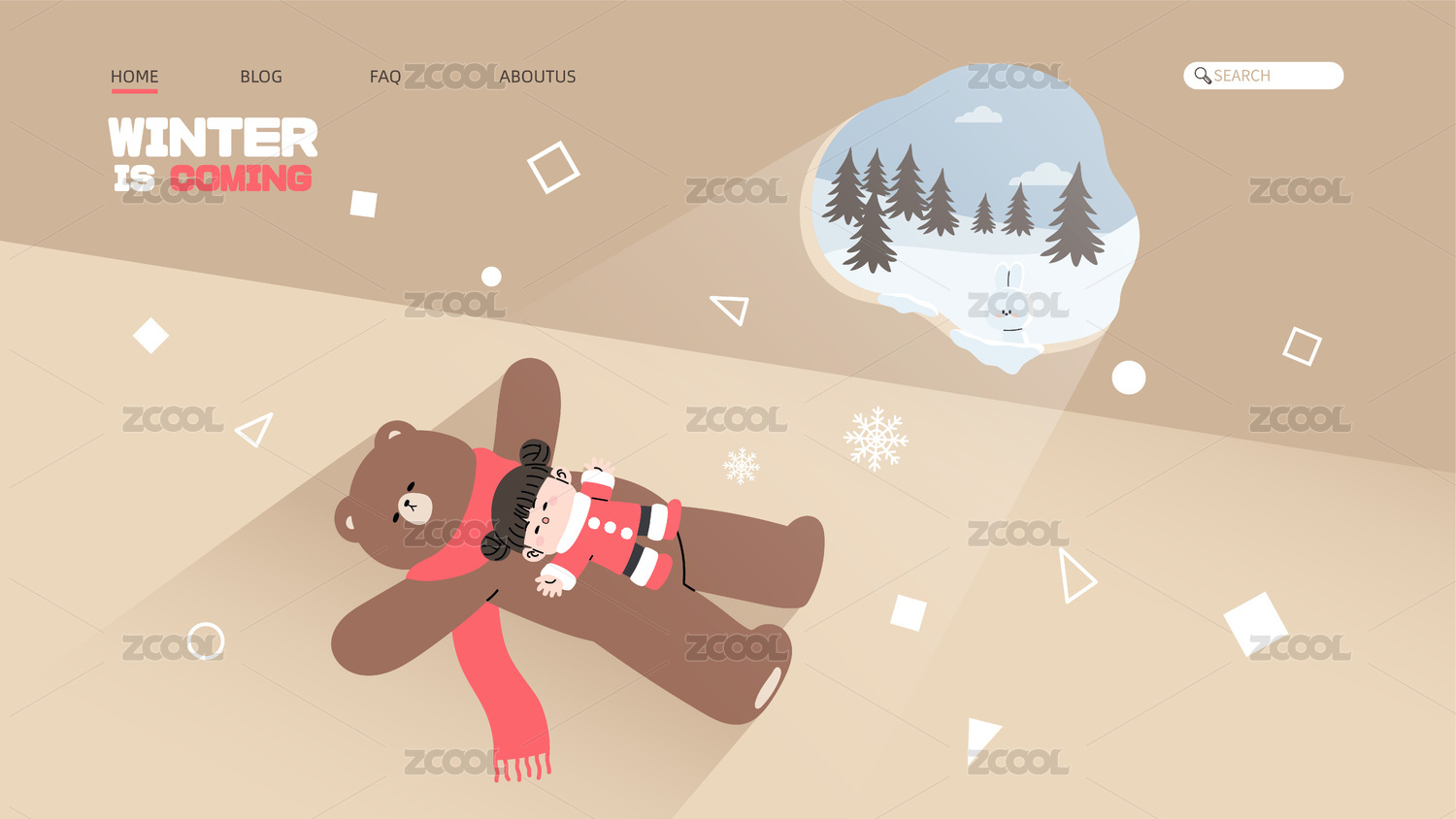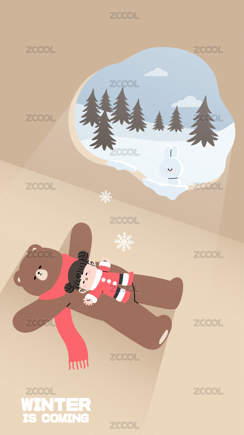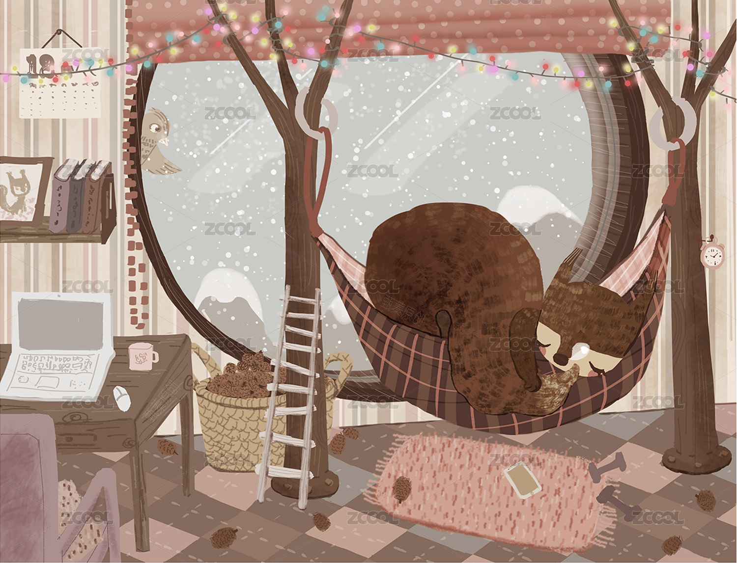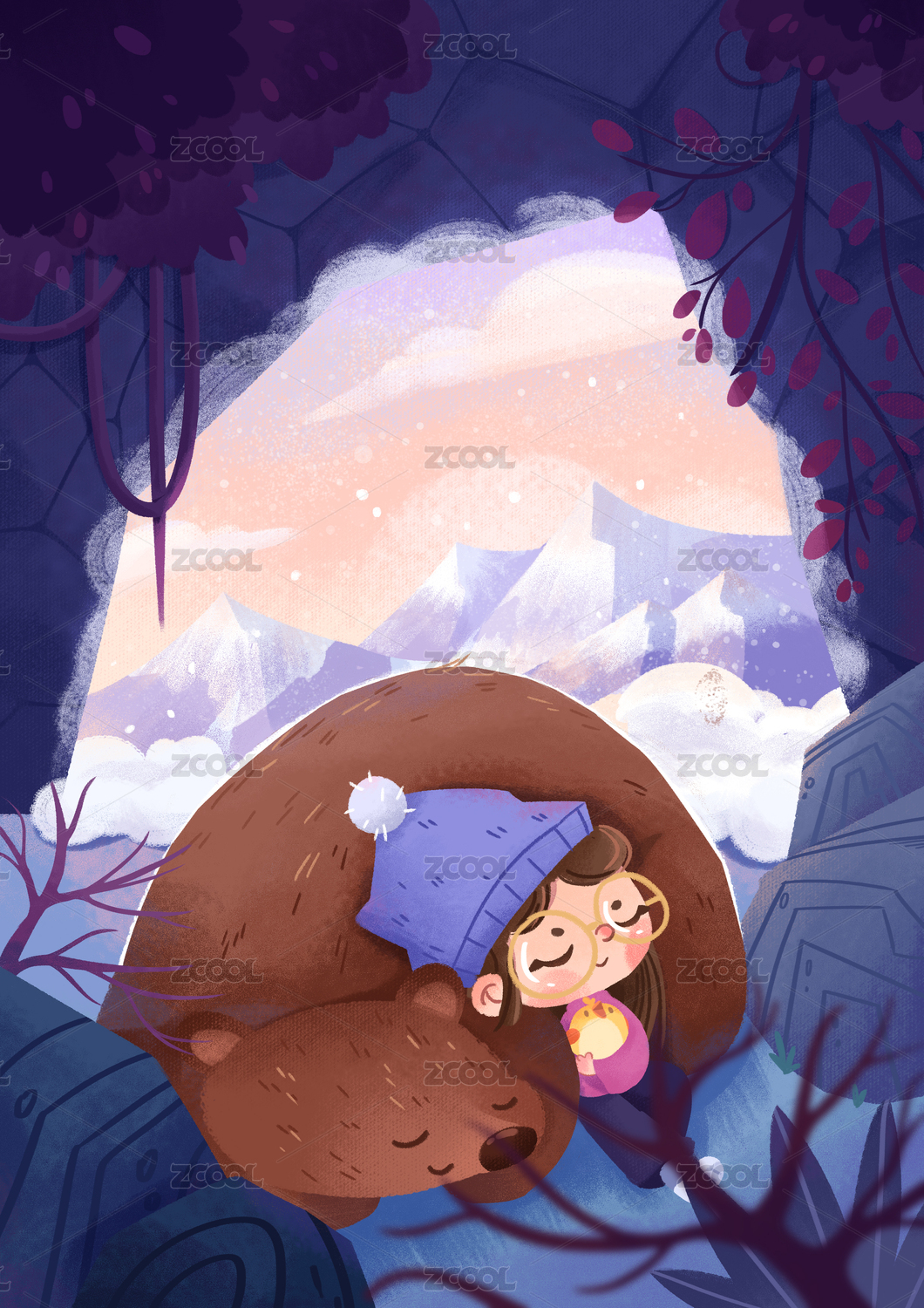 冬眠的熊扁平插畫(huà)風(fēng)格