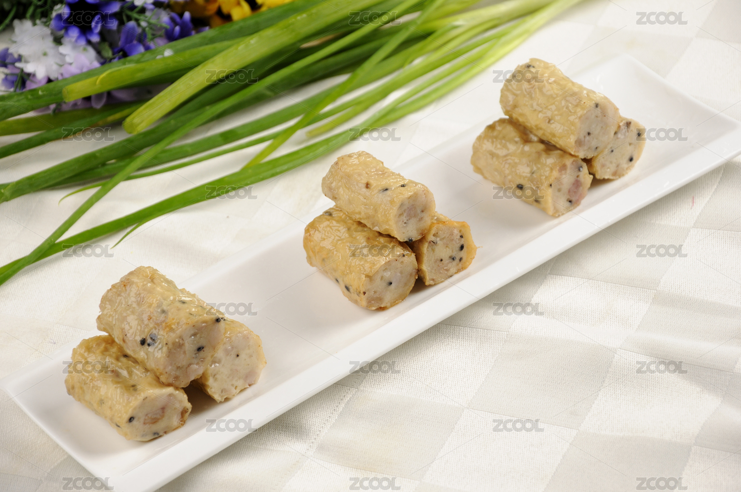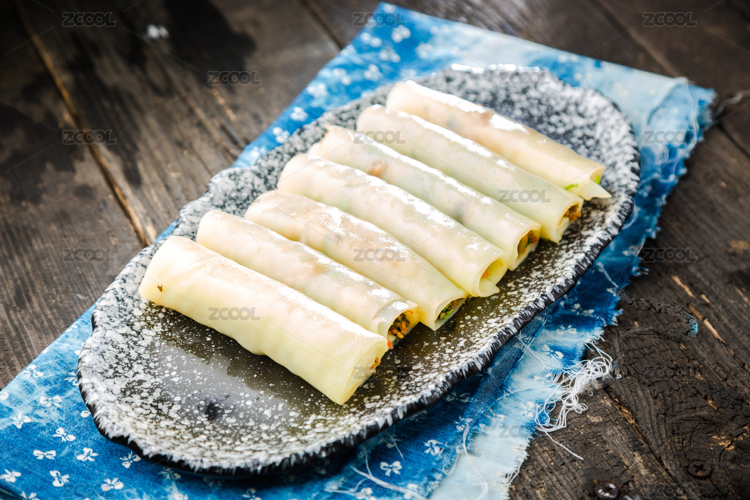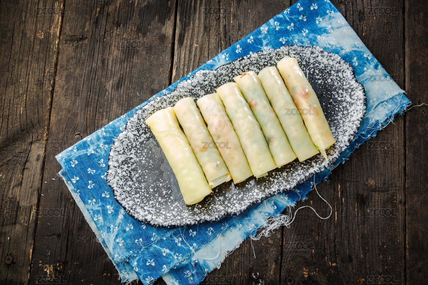 木盤上的美味糯米卷