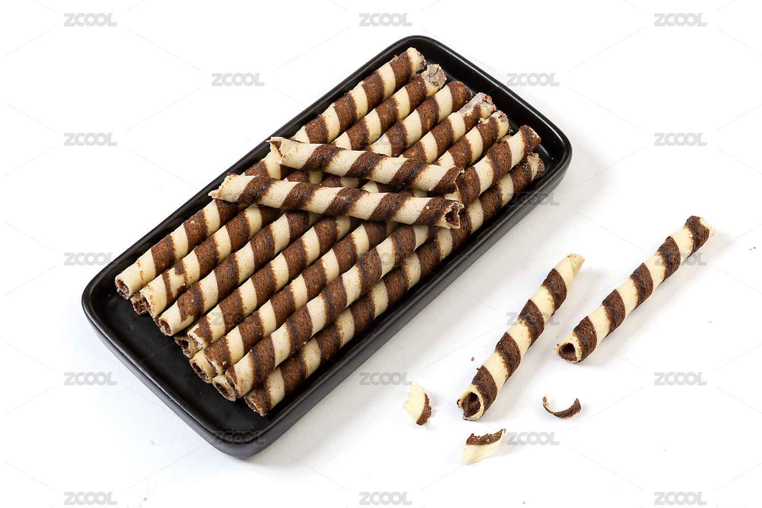 白底上盤子里的巧克力味夾心棒