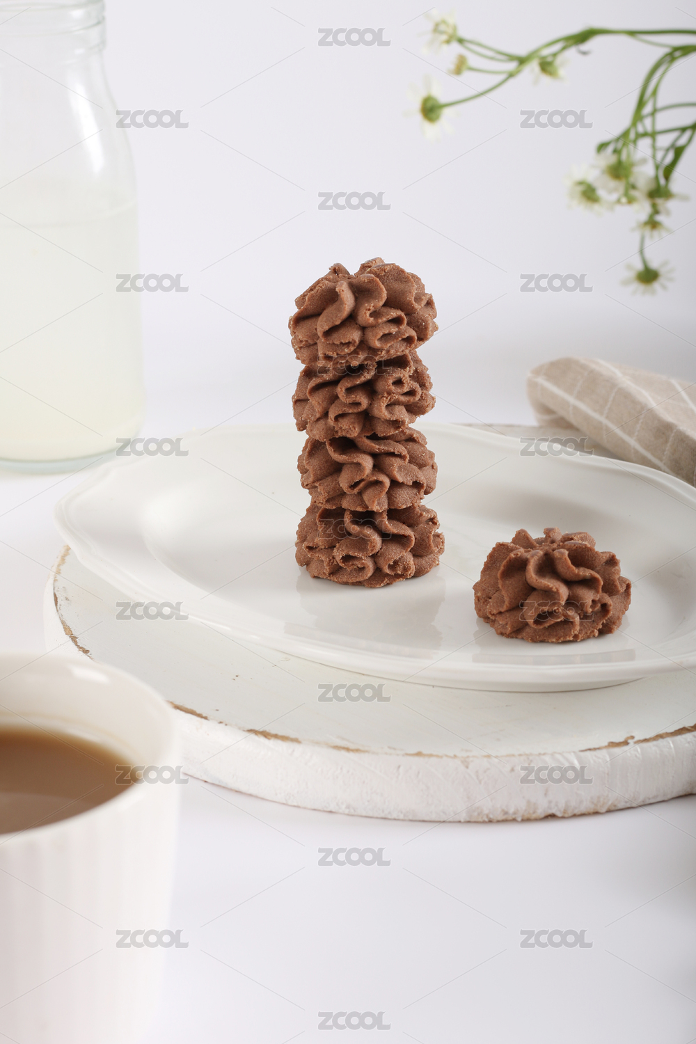 白背景休閑零食巧克力味餅干