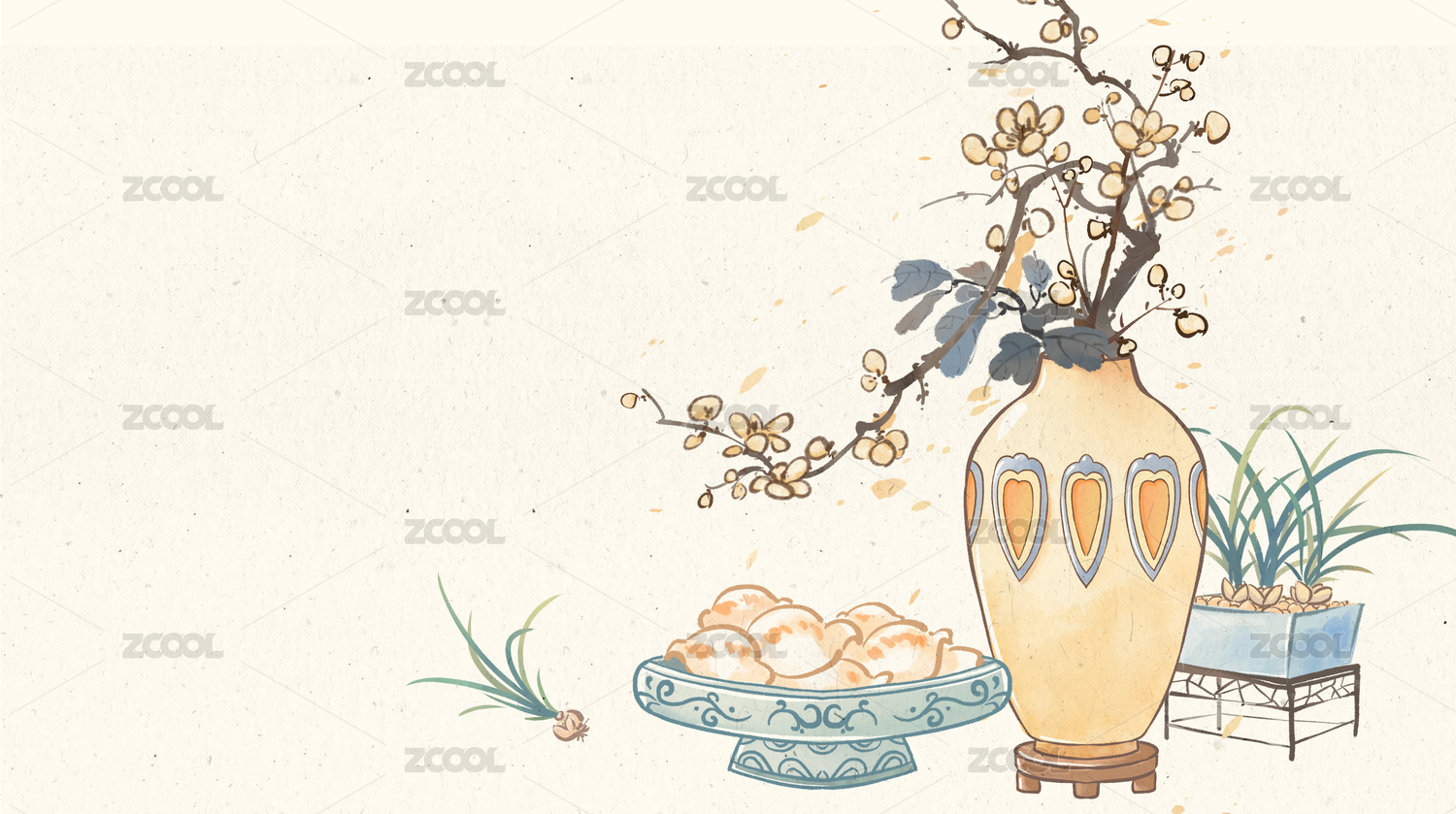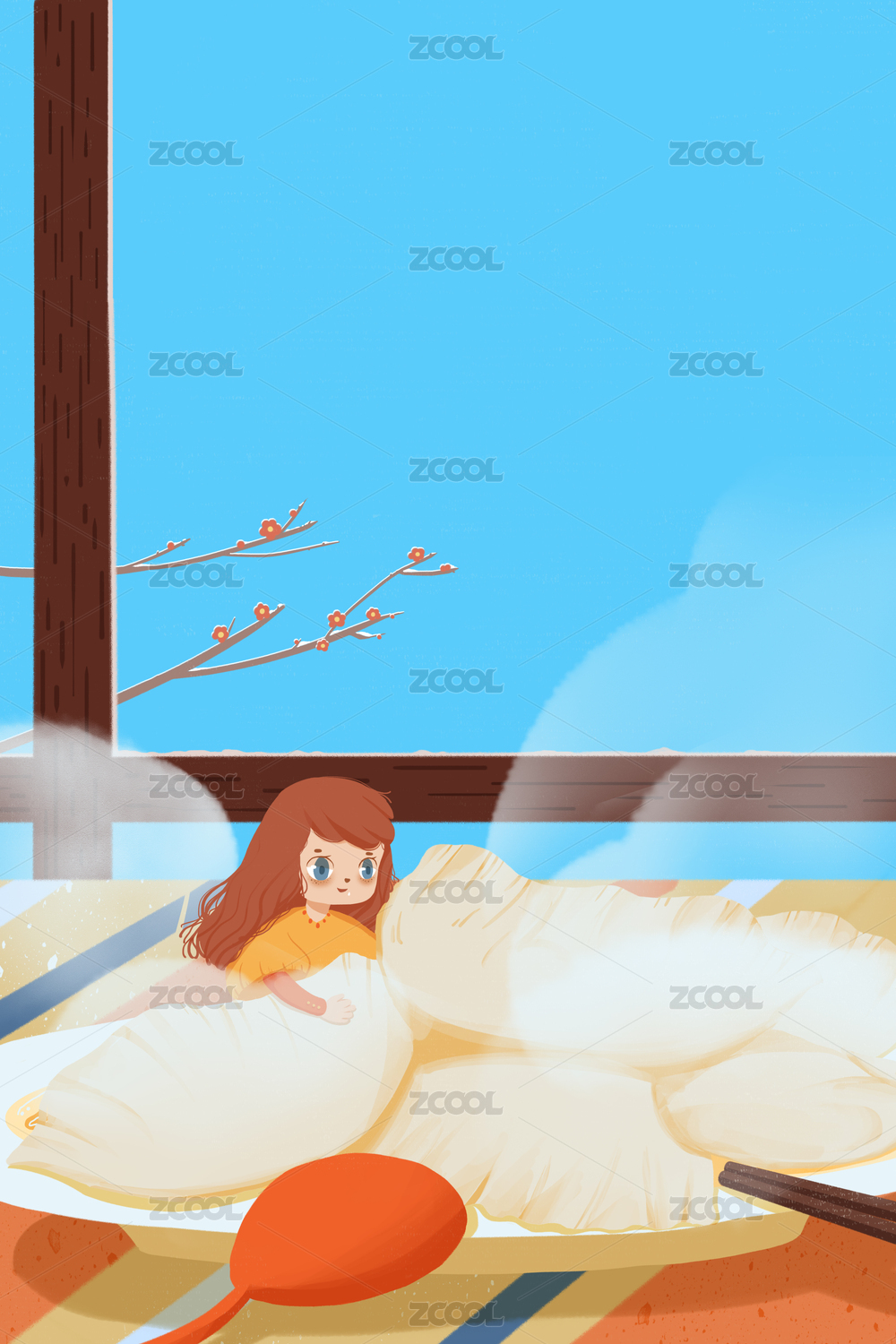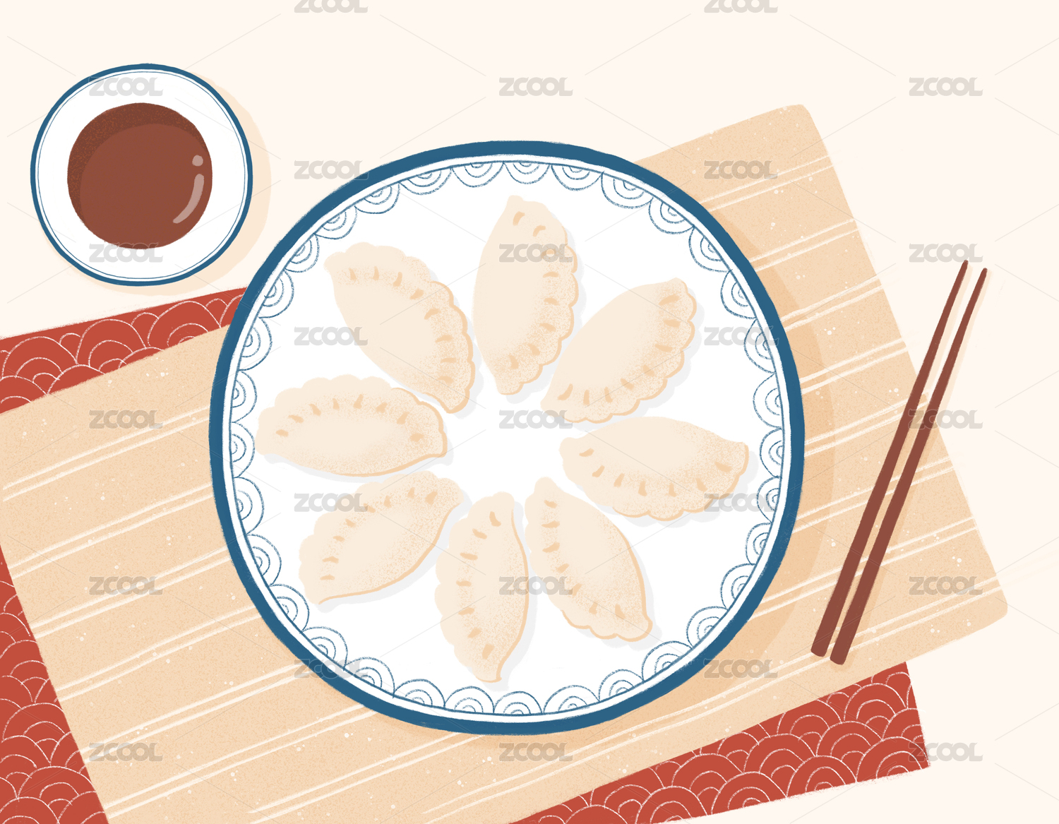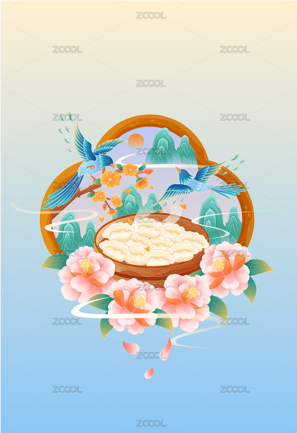 矢量古風(fēng)二十四節(jié)氣冬至插畫過節(jié)吃餃子