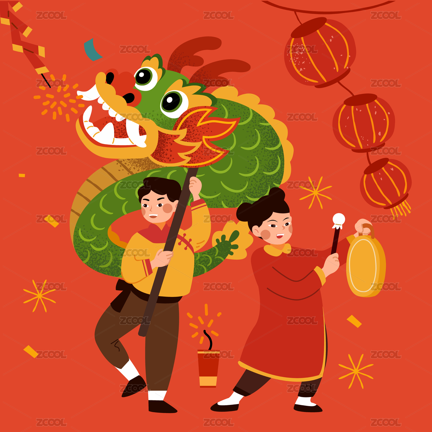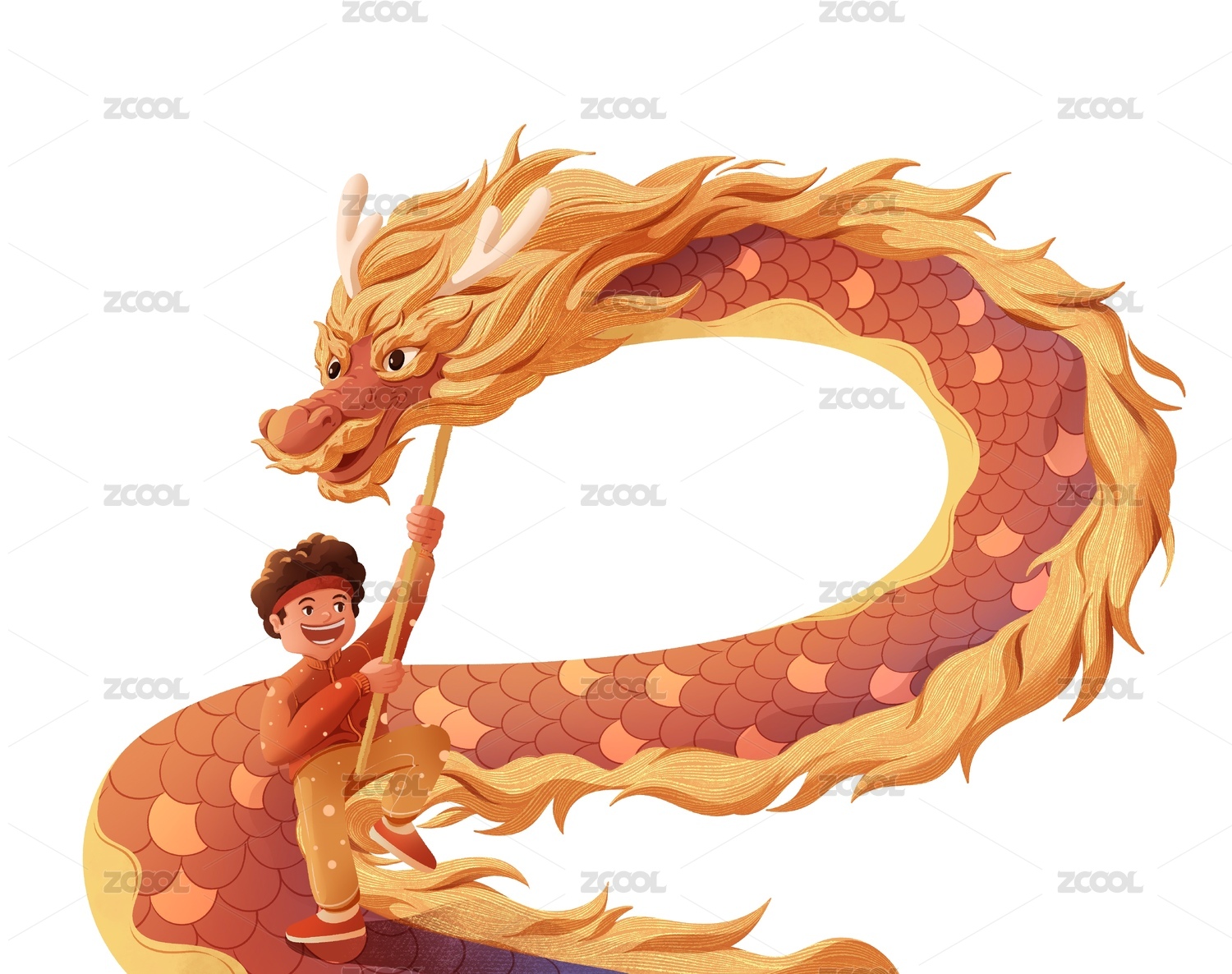 除夕新年舞龍表演插畫