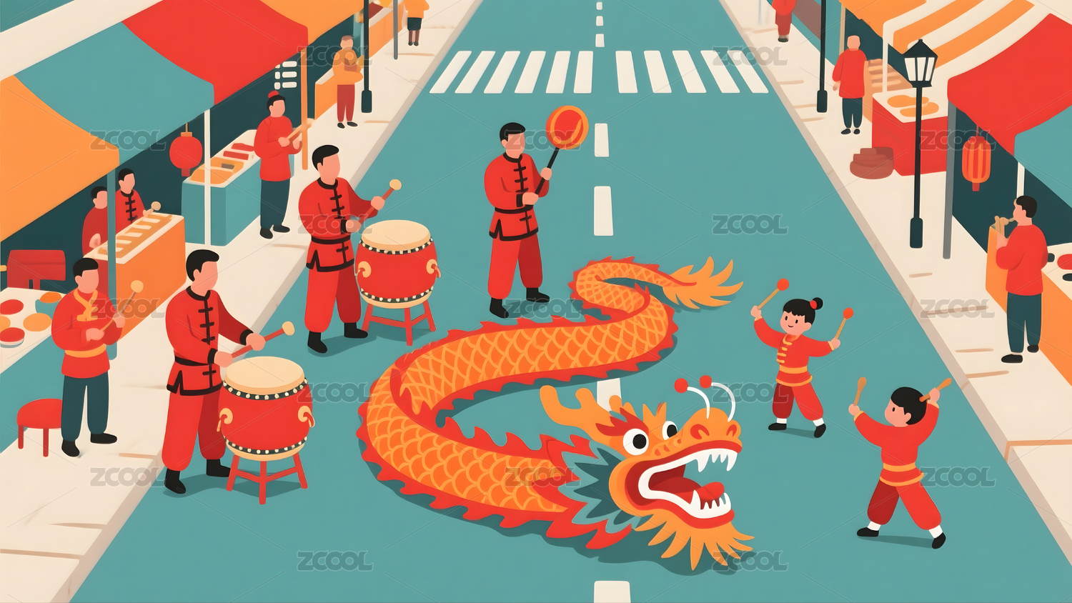 新年舞龍表演插畫