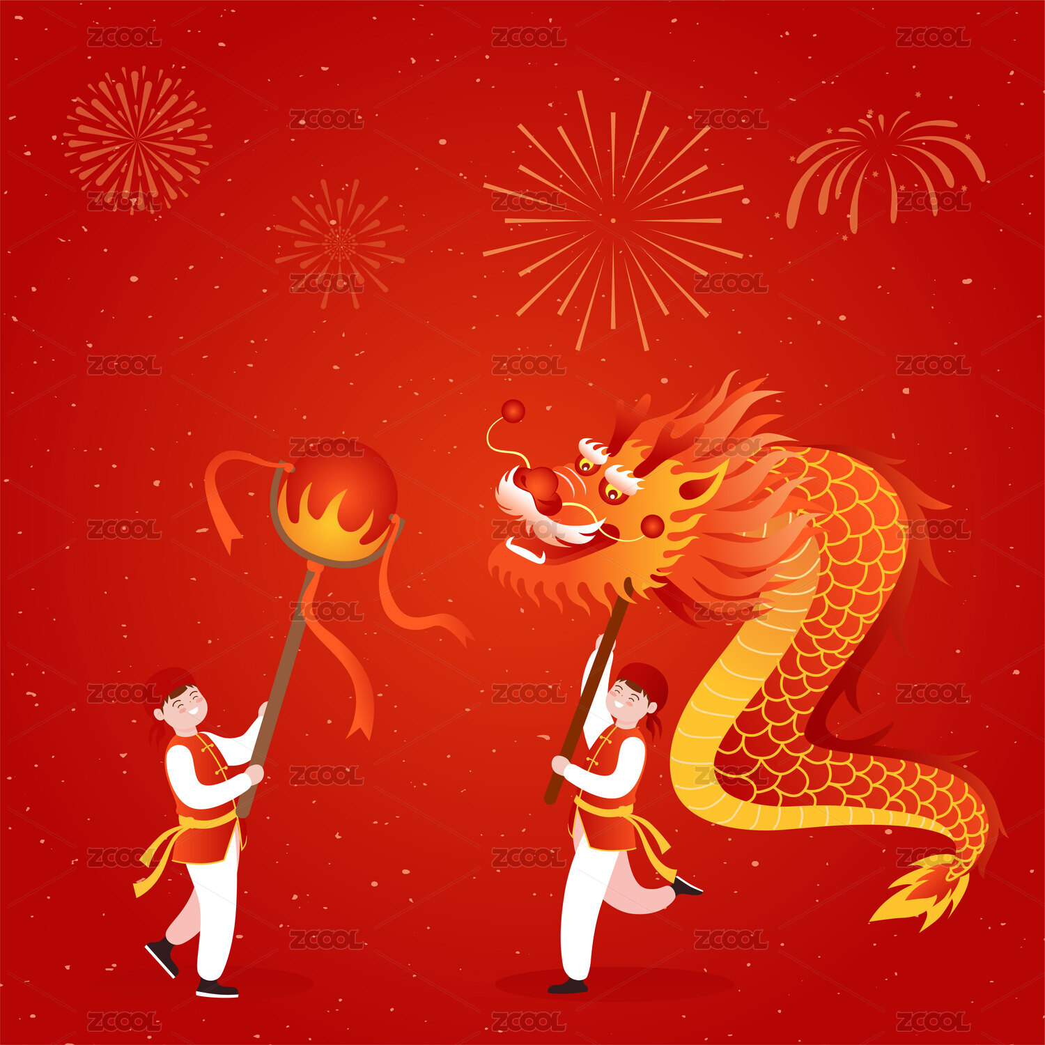 新年舞龍表演賀新春節(jié)日慶典插畫海報元素